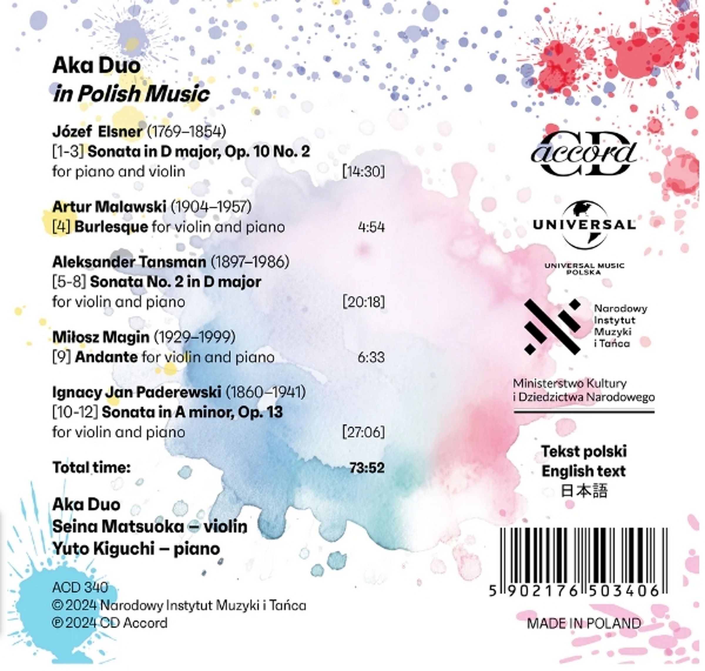 Aka Duo, Jozef Antoni Franciszek Elsner, Milosz Magin, Artur Malawski, Ignaz Paderewski, Alexandre Tansman