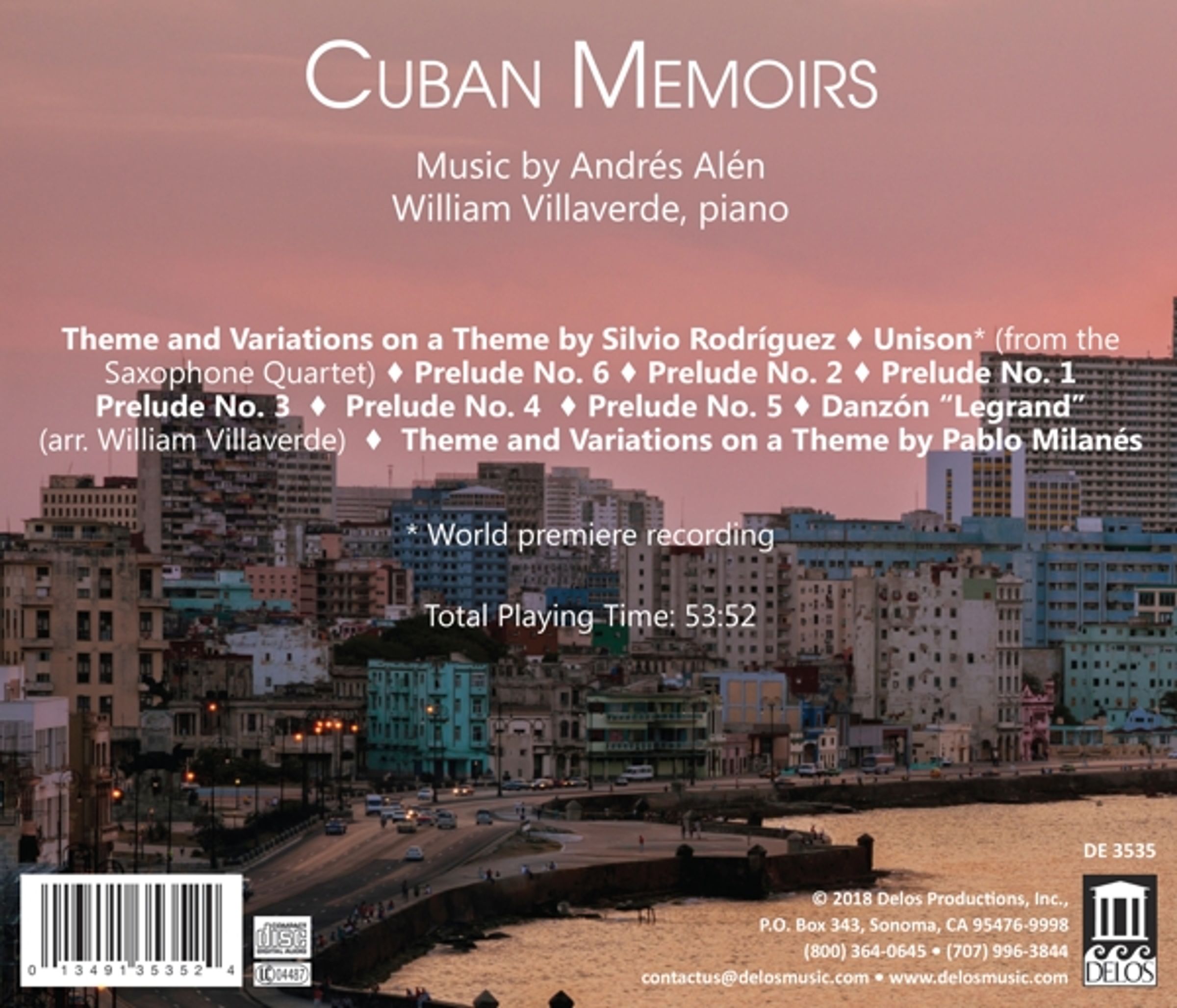 Seine Klaviermusik wurde jedoch selten aufgenommen. Hier kommt der brillante kubanisch-amerikanische Pianist William Villaverde ins Spiel. Alén war acht Jahre lang sein Mentor in Kuba, bevor Villaverde 2001 in die Vereinigten Staaten zog und sich dort einen Ruf als Klaviervirtuose erwarb.
