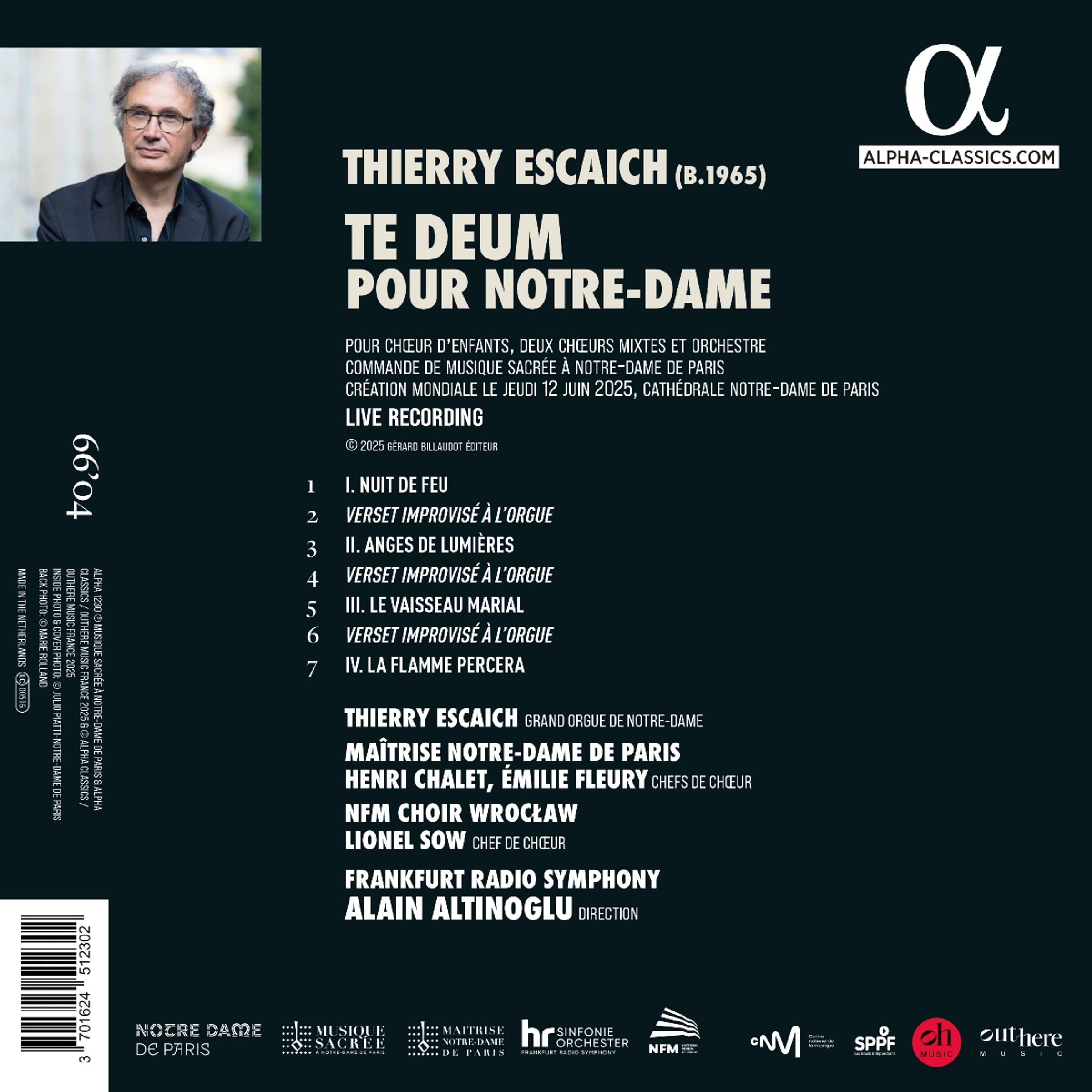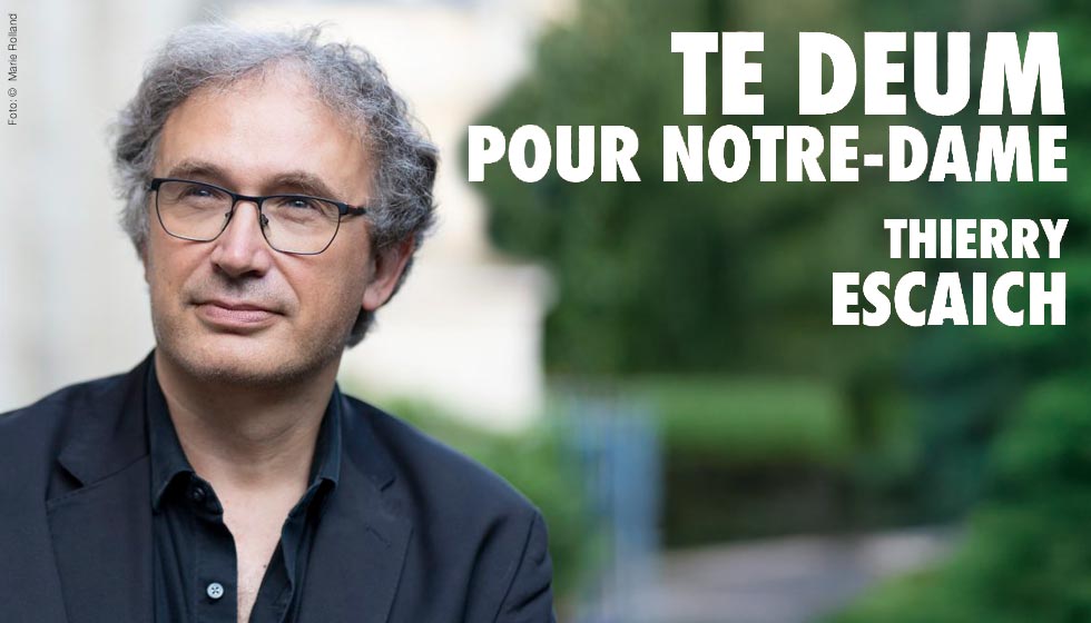 Thierry Escaich ließ sich von der tausendjährigen Geschichte der Kathedrale inspirieren und schöpfte aus zahlreichen Quellen, angefangen bei der Bibel, aber auch von namhaften Autoren, die über Notre-Dame geschrieben hatten, wie Victor Hugo und Charles Péguy. Nach Escaichs eigener Aussage »ist dieses Te Deum eine Reise von den zerstörerischen Flammen der Feuersbrunst zum Feuer der Erlösung«. Escaich, der seit 2024 Ko-Titularorganist der Kathedrale ist, präsentiert zwischen den einzelnen Sätzen des Te Deum auch Beispiele seiner berühmten Improvisationskunst an der Domorgel. Das Werk wurde bei seiner Uraufführung von allen Seiten gelobt, und einige Journalisten bezeichneten es als »das große französische Oratorium, auf das wir seit Beginn des 21. Jahrhunderts gewartet haben.« (Le Figaro)