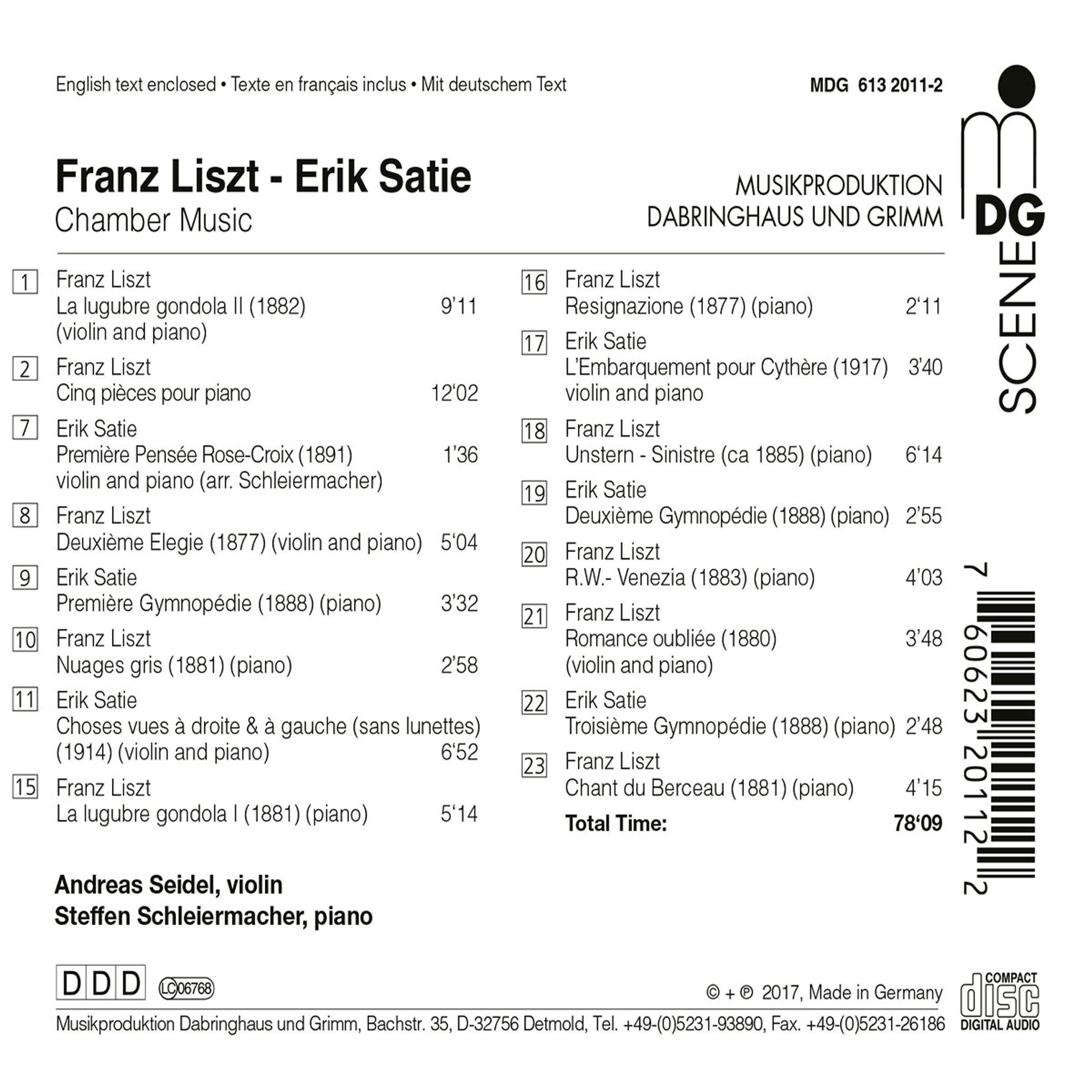 Was hat Franz Liszt mit Erik Satie gemeinsam? Der brillante Virtuose und Magier pianistischer Opulenz mit dem minimalistischen Klangasketen? Steffen Schleiermacher hat im nahezu unbekannten Spätwerk des einen erstaunliche Parallelen zum etwa zeitgleich entstandenen Frühwerk des anderen entdeckt. Gemeinsam mit Gewandhauskonzertmeister Andreas Seidel präsentiert er seine frappanten Erkenntnisse nun dem Publikum – Überraschungen garantiert!