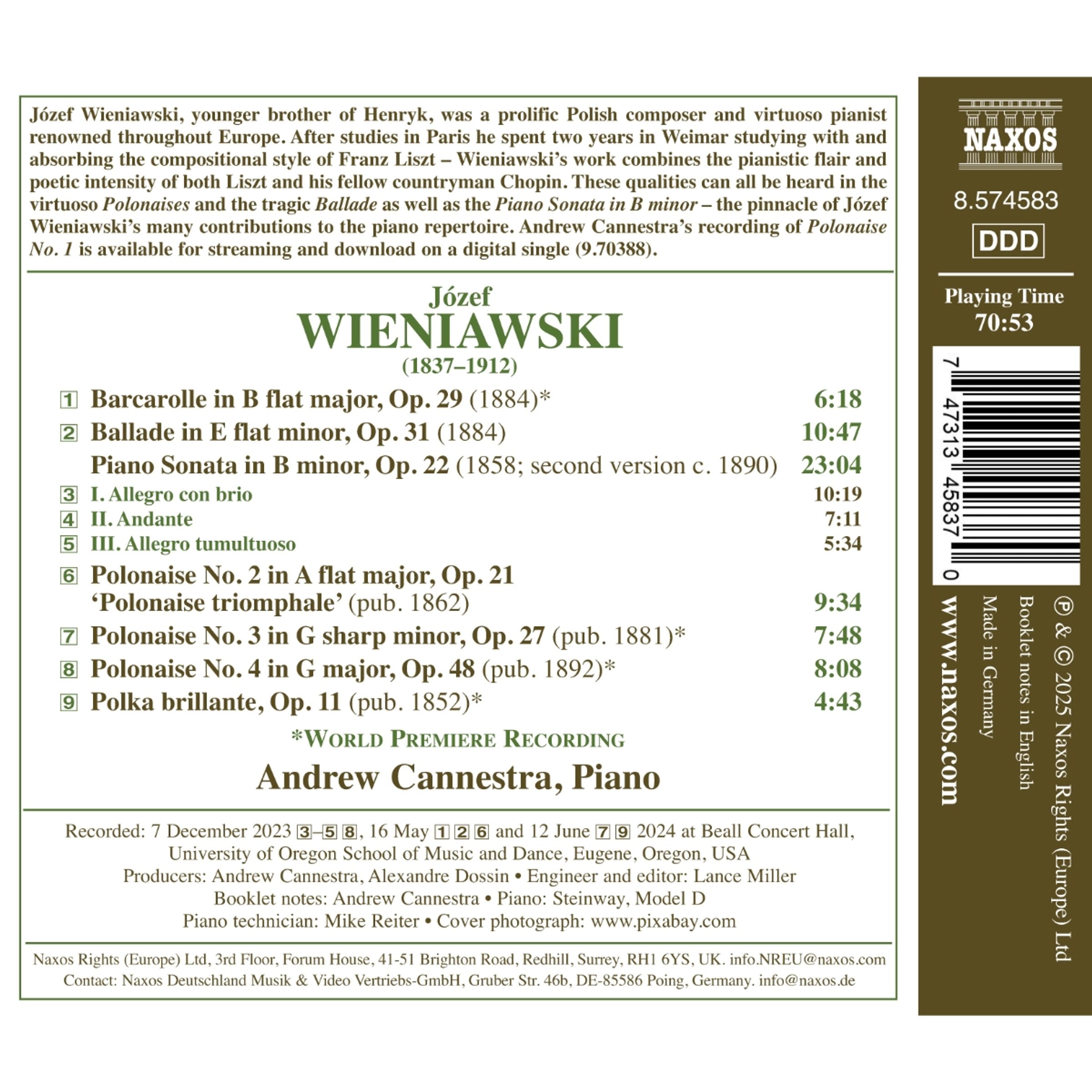 Józef Wieniawski, der jüngere Bruder von Henryk, war ein produktiver polnischer Komponist und virtuoser Pianist, der in ganz Europa bekannt war. Nach seinem Studium in Paris verbrachte er zwei Jahre in Weimar, um bei Franz Liszt zu studieren und dessen Kompositionsstil zu verinnerlichen. Wieniawskis Werk vereint das pianistische Gespür und die poetische Intensität sowohl von Liszt als auch seines Landsmanns Chopin. All diese Qualitäten sind in den virtuosen Polonaisen und der tragischen Ballade sowie in der Klaviersonate in h-Moll zu hören - dem Höhepunkt von Józef Wieniawskis zahlreichen Beiträgen zum Klavierrepertoire