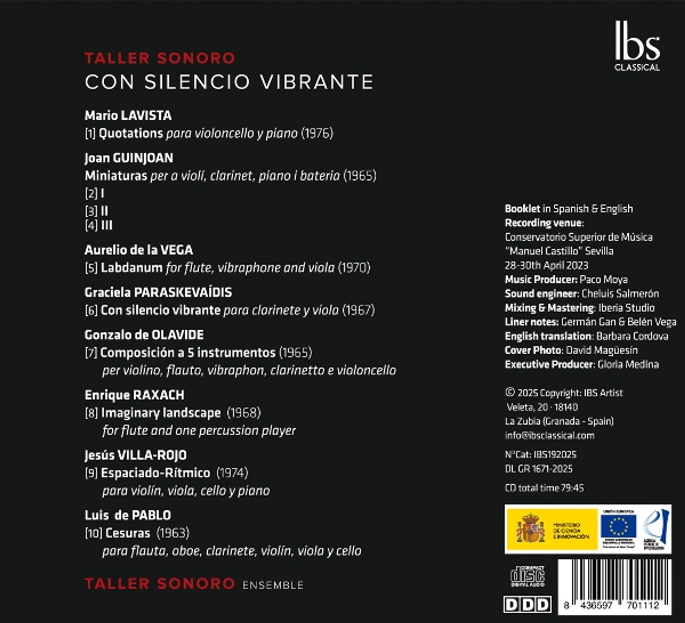 "Con silencio vibrante" zeichnet ein fesselndes Porträt der spanischen und lateinamerikanischen musikalischen Avantgarde in einer ihrer kreativsten und transformativsten Phasen. Das Album, eingespielt vom renommierten Ensemble Taller Sonoro, vereint acht Kammermusikwerke, die zwischen 1963 und 1976 komponiert wurden, und bietet einen seltenen und aufschlussreichen Einblick in ein Repertoire, das bislang nur unzureichend dokumentiert ist. Die Aufnahme zeichnet ein dichtes Netz aus ästhetischen Ideen, persönlichen Verbindungen und transatlantischen Austauschprozessen nach, die die zeitgenössische Musik der Mitte des 20. Jahrhunderts geprägt haben. Serielle Strenge, kontrollierter Zufall, grafische Notation, literarische Inspiration und raffinierte Klangfarbenforschung koexistieren in Werken von Mario Lavista, Joan Guinjoan, Aurelio de la Vega, Graciela Paraskevaídis, Gonzalo de Olavide, Enrique Raxach, Jesus Villa-Rojo und Luis de Pablo - einige davon hier in der Weltpremiere. Von der zerbrechlichen Poesie in Lavistas "Quotations" bis zur architektonischen Klarheit von De Pablo's "Cesuras" offenbart das Album eine gemeinsame Suche nach neuen Ausdrucksmöglichkeiten, wobei die unverwechselbaren Stimmen jedes Komponisten erhalten bleiben. Stille, Textur, Rhythmus und Raum werden zu strukturellen Elementen einer Musik, die intellektuelle Strenge mit beeindruckender Ausdruckskraft in Einklang bringt. "Con silencio vibrante" bestätigt Taller Sonoro als einen der führenden Interpreten des zeitgenössischen Repertoires und ist ein unverzichtbares Album fur Hörer, die sich für das avantgardistische Erbe des 20. Jahrhunderts interessieren.