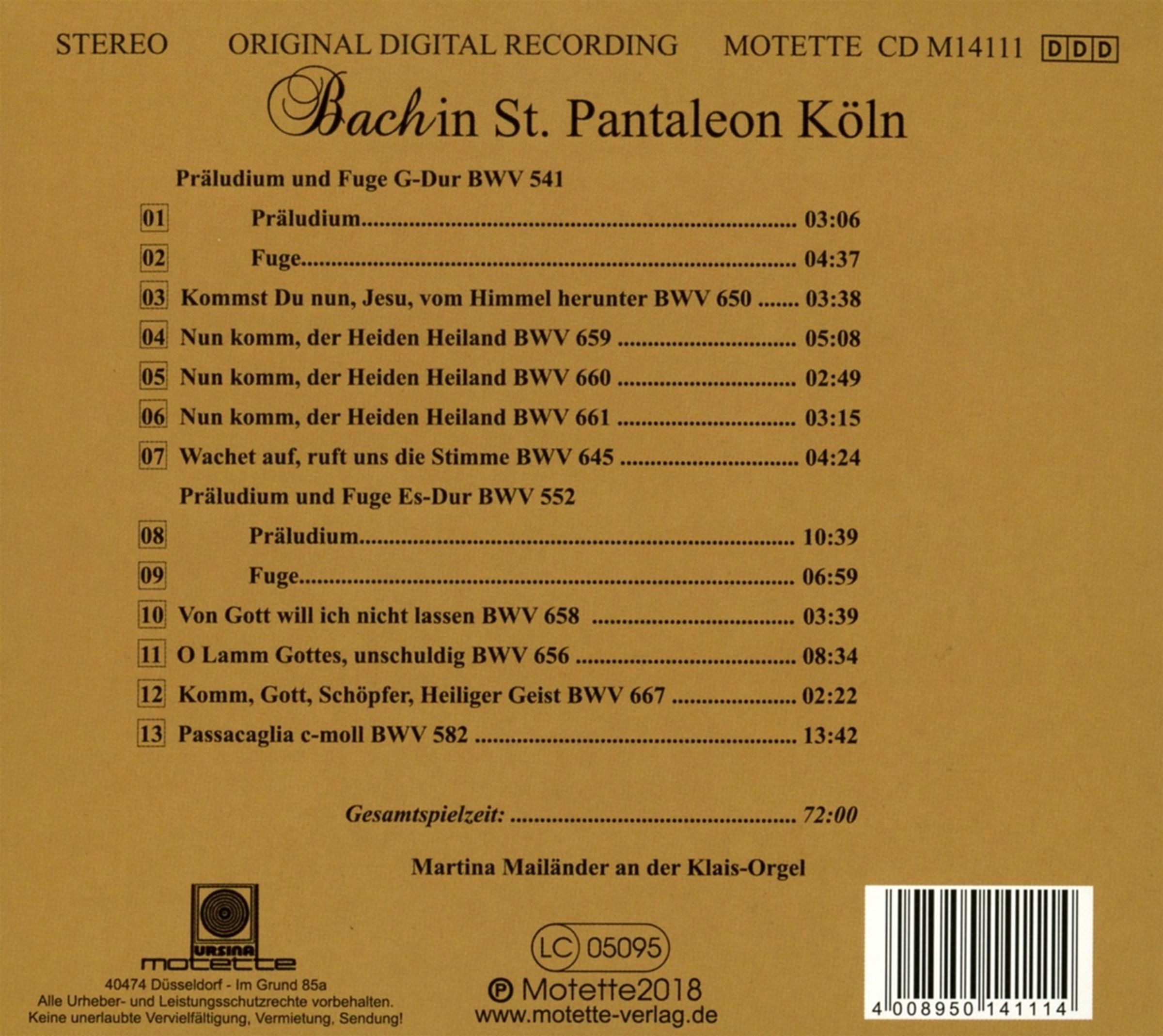 Martina Mailänder - Bach in St. Pantaleon Köln auf CD