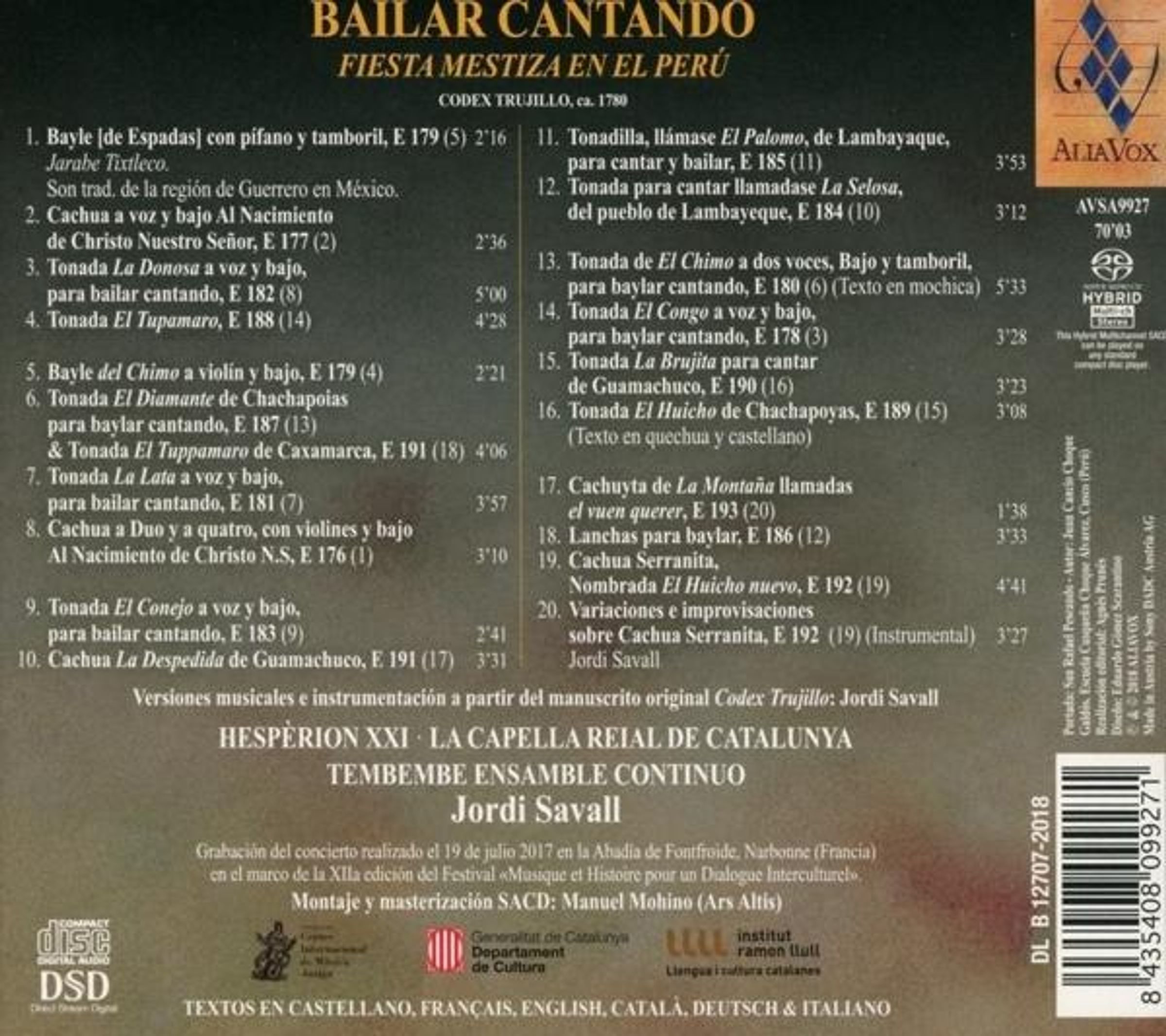 Bailar Cantando - Fiesta Mestiza en el Peru 1788 auf Super Audio CD