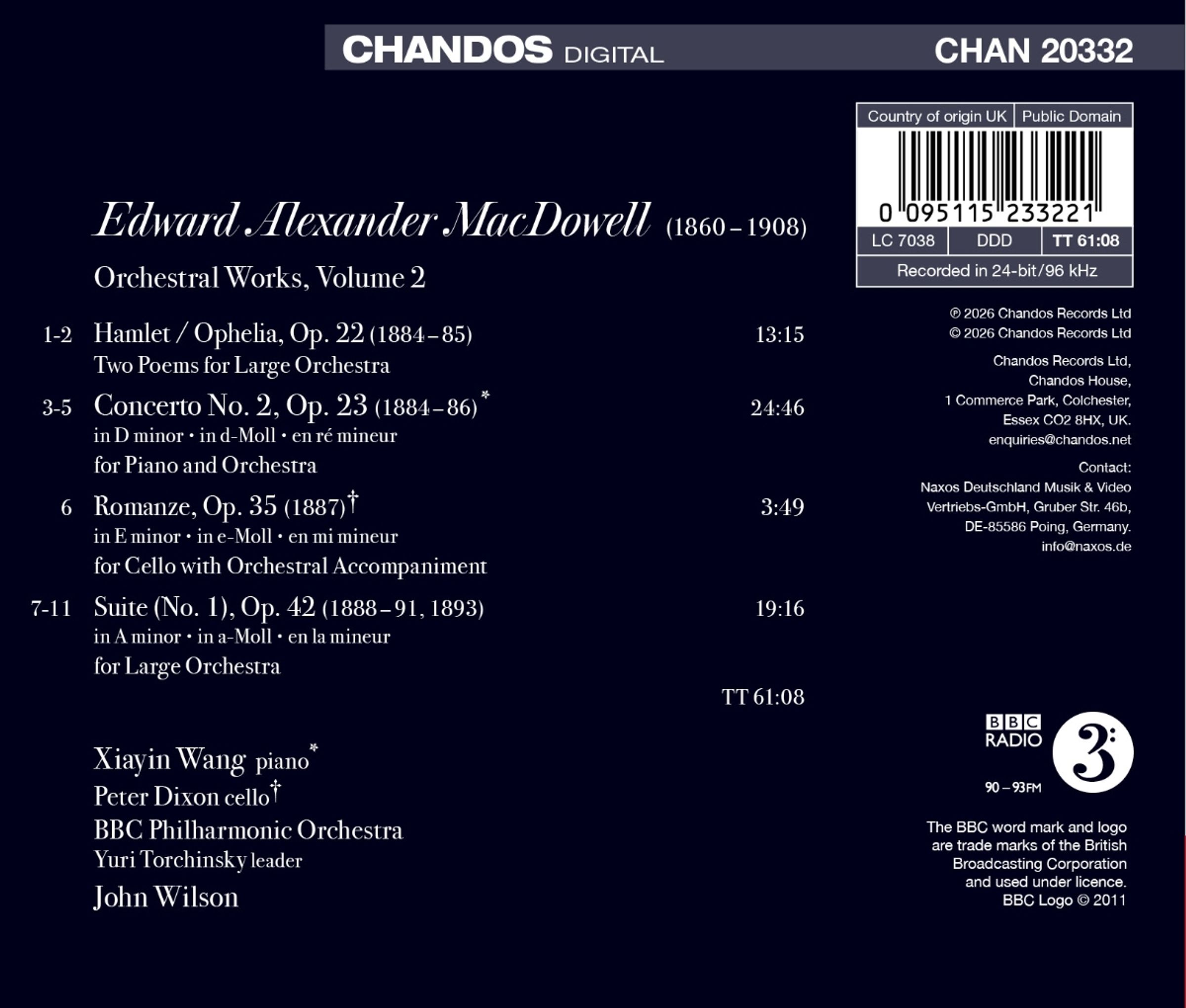 - Xiayin Wang, Peter Dixon, BBC Philharmonic Orchestra, John Wilson