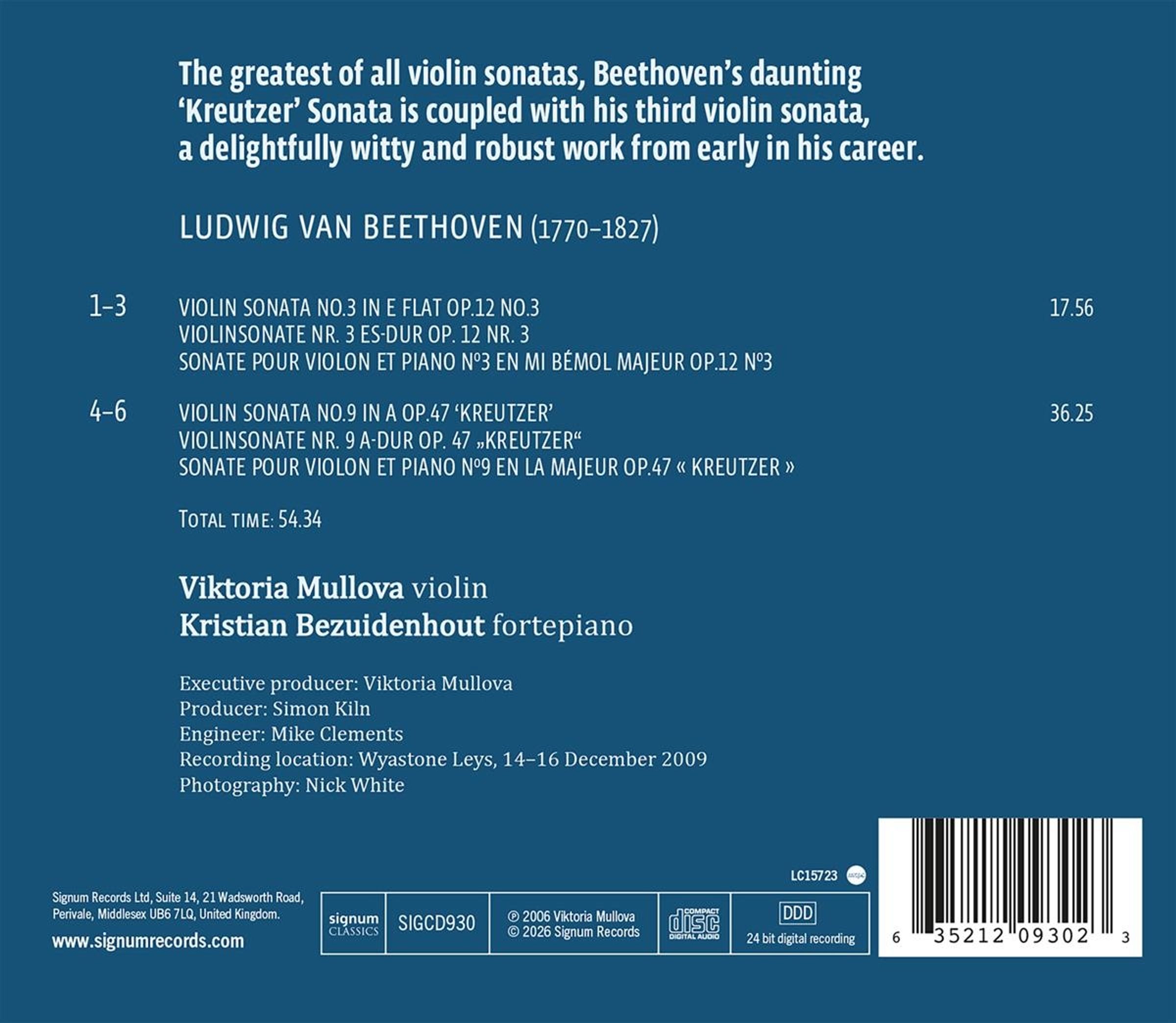 Wiederveröffentlichung der Violinsonaten Nr. 3 und 9 Ludwig van Beethovens mit Viktoria Mullova und ihrem musikalischen Partner Kristian Bezuidenhout. Das Duo präsentiert eine spannungsgeladene Interpretation dieser Werke und zeigt seine energiegeladene und spontane Herangehensweise an eines der anspruchsvollsten Werke aus Beethovens Repertoire.