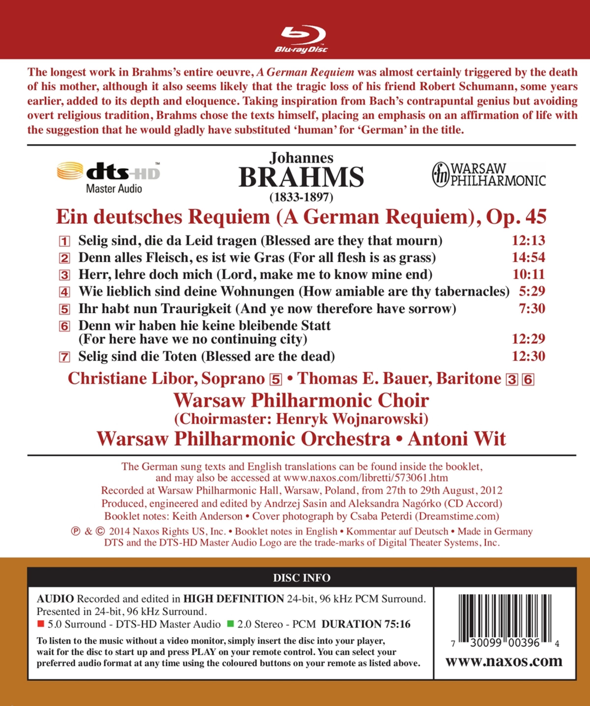 Johannes Brahms: Ein Deutsches Requiem op.45 auf Blu-ray Audio