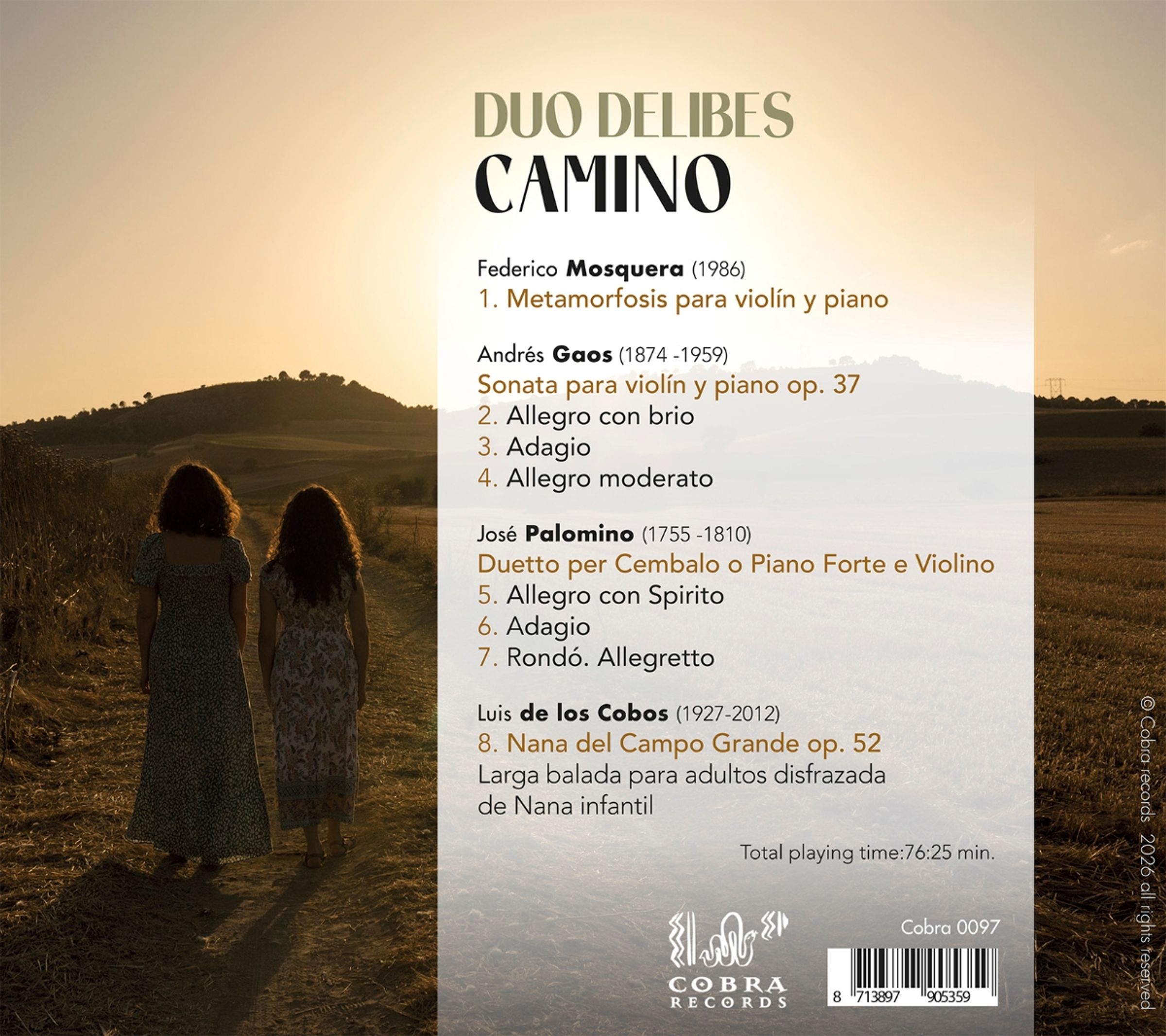 „CAMINO“, „Mosquera“, „Gaos“, „Palomino“, „De los Cobos“, „DUO DELIBES“. Zwei Frauen auf einem Feldweg im Sommer., CD