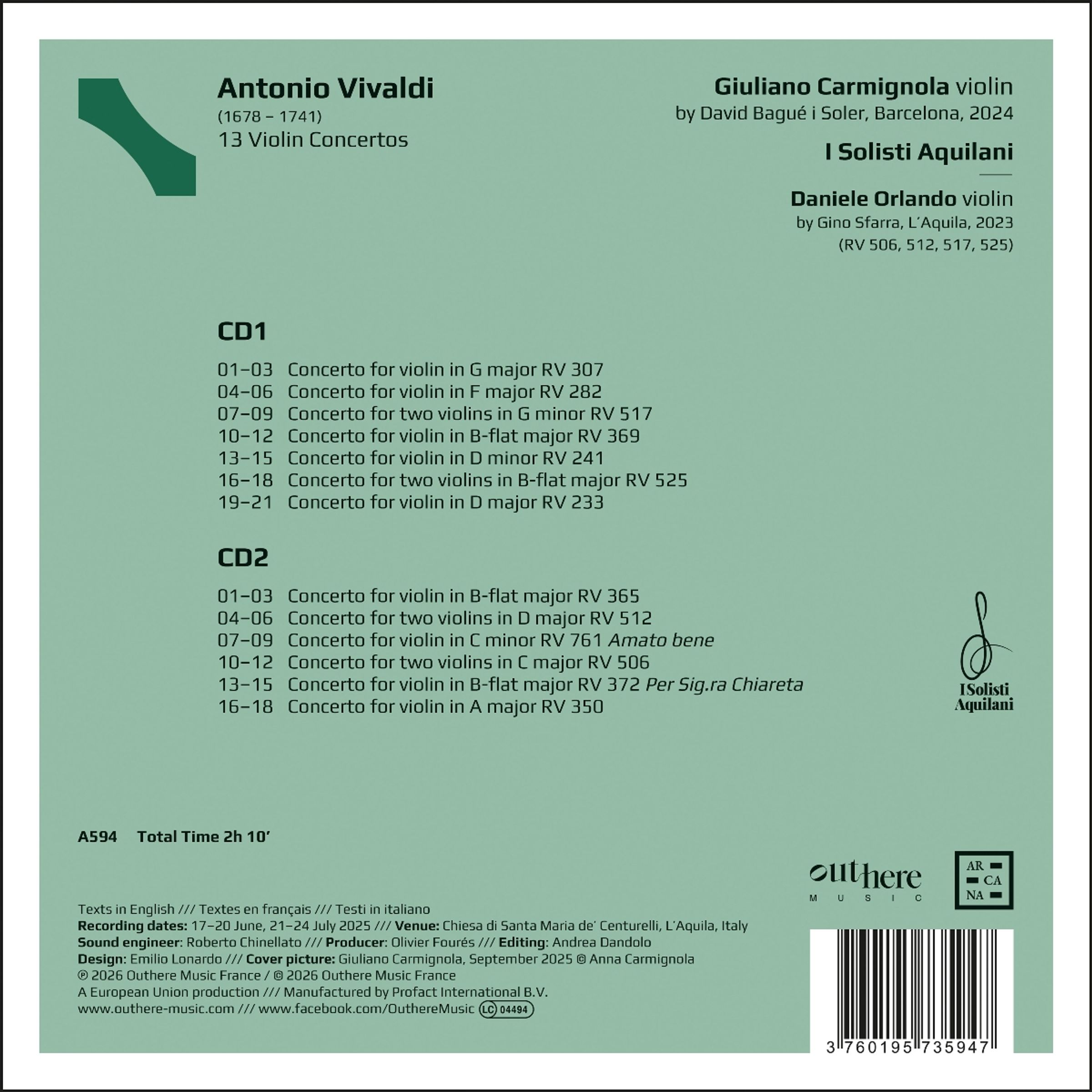 - Giuliano Carmignola, Daniele Orlando, I Solisti Aquilani