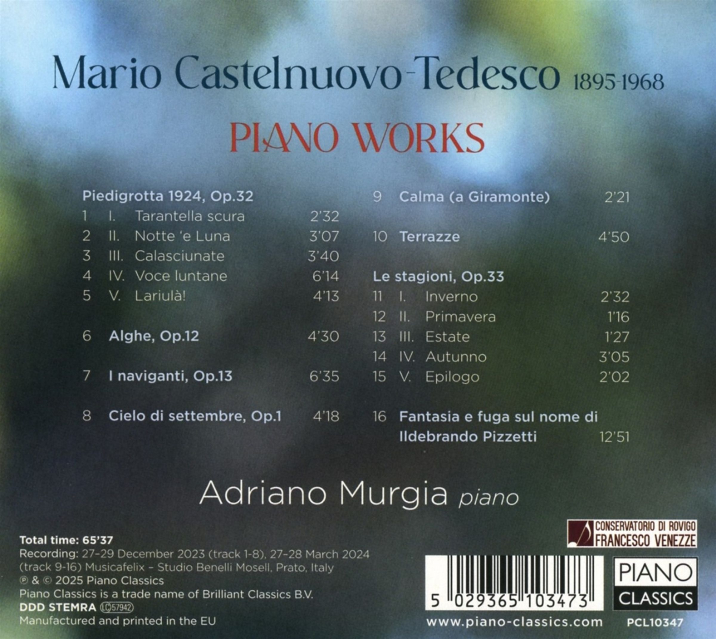 Piedigrotta 1924 op. 32; Alghe op. 12; I naviganti op. 13; Cielo di settembre op. 1; Calma (a Giramonte); Terrazze; Le Stagioni op. 33; Fantasia e Fuga sul Nome di Ildebrando Pizzetti