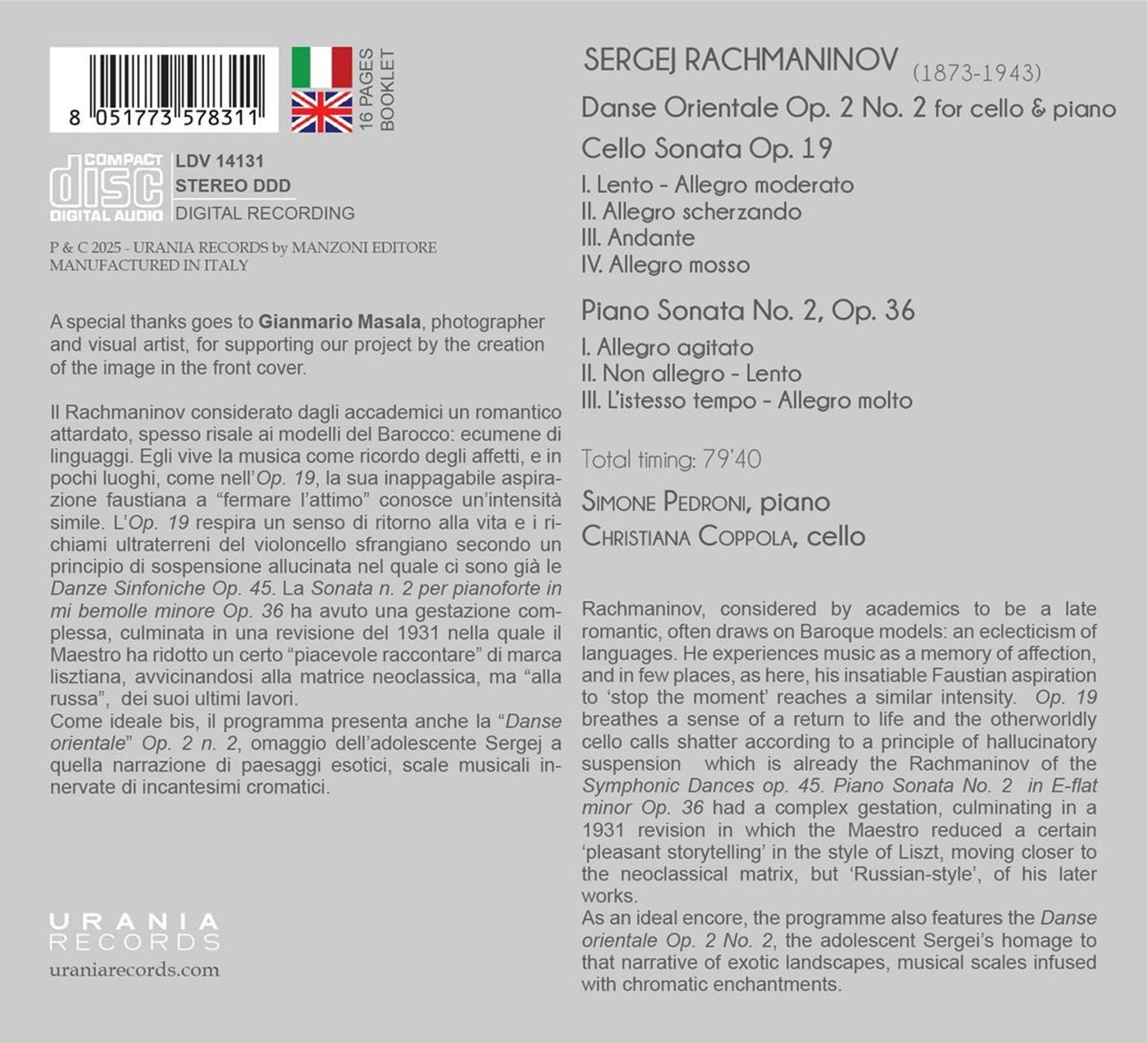Sergej Rachmaninoff: Sonate für Cello & Klavier op.19 auf CD
