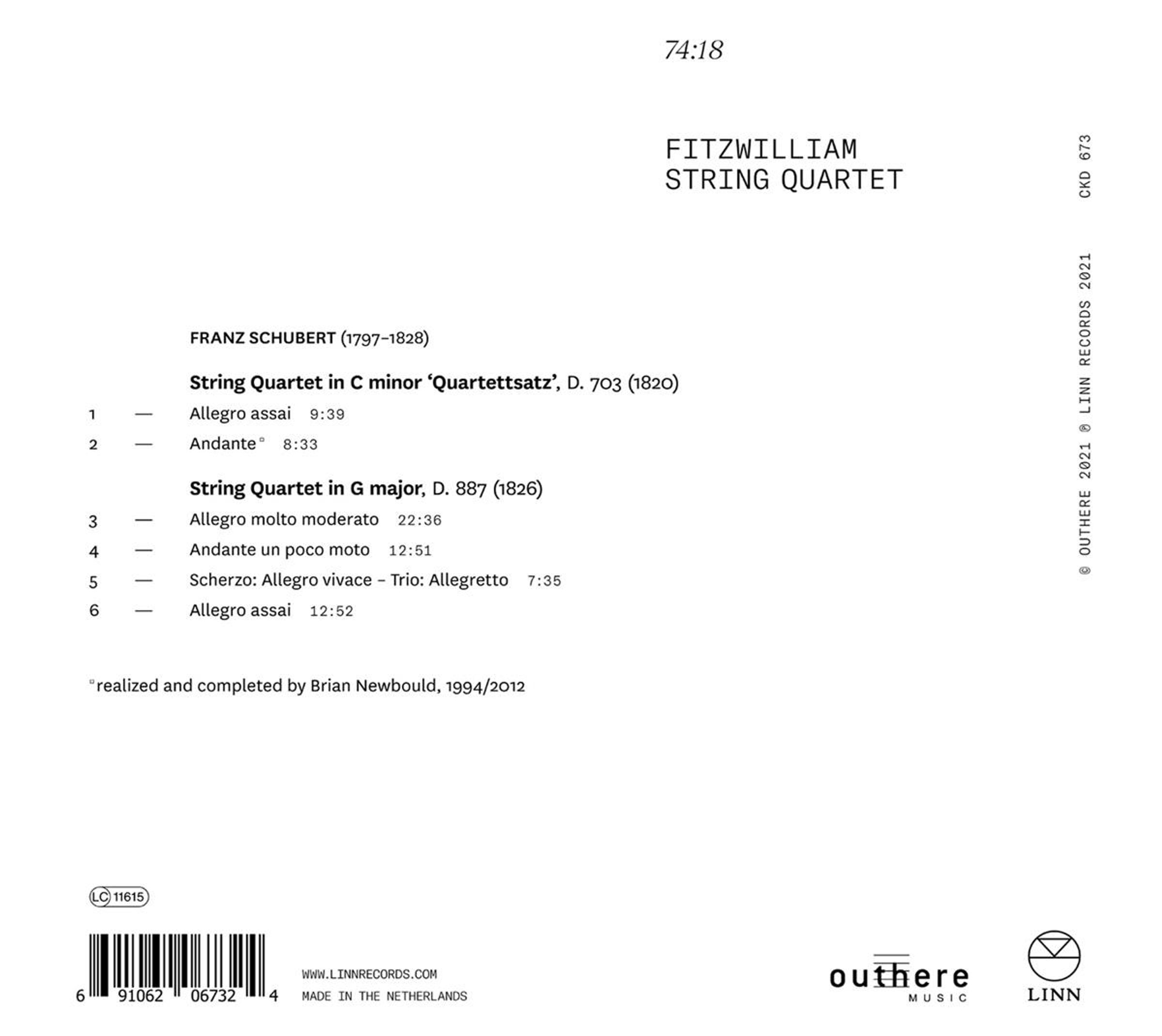 Der unerklärlicherweise unvollendet gebliebene c-Moll-Quartettsatz rundet das Programm ab. Dieser kantige und doch formal unorthodoxe Einzelsatz wird hier mit seinem zweiten Andante-Satz präsentiert, der vom führenden Schubert-Kenner Brian Newbould vervollständigt wurde.