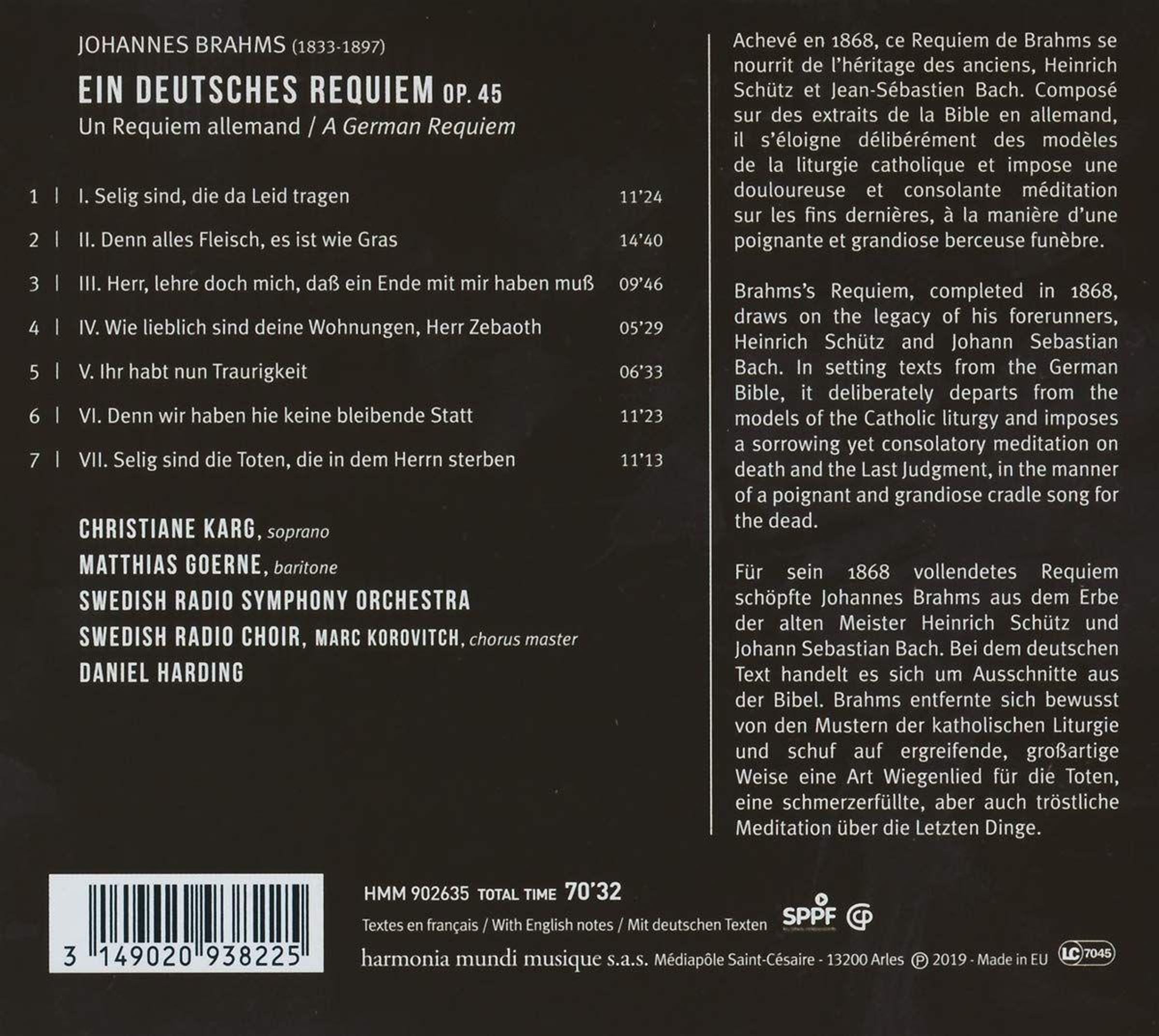 - Christiane Karg, Matthias Goerne, Swedish Radio Choir, Swedish Radio Symphony Orchestra, Daniel Harding