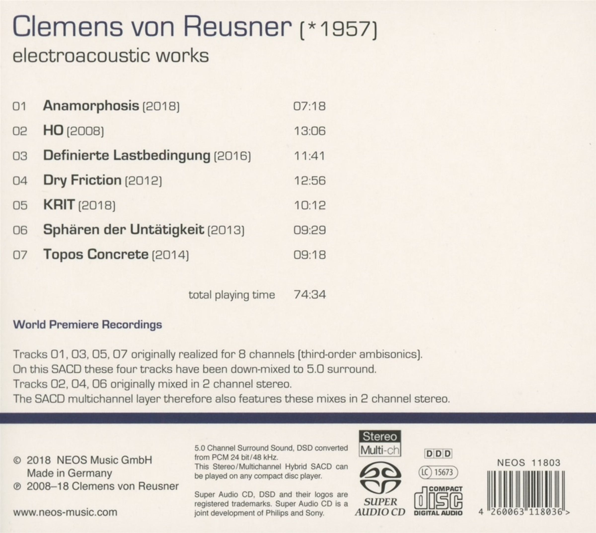 Clemens von Reusner: Electroacoustic Works auf Super Audio CD