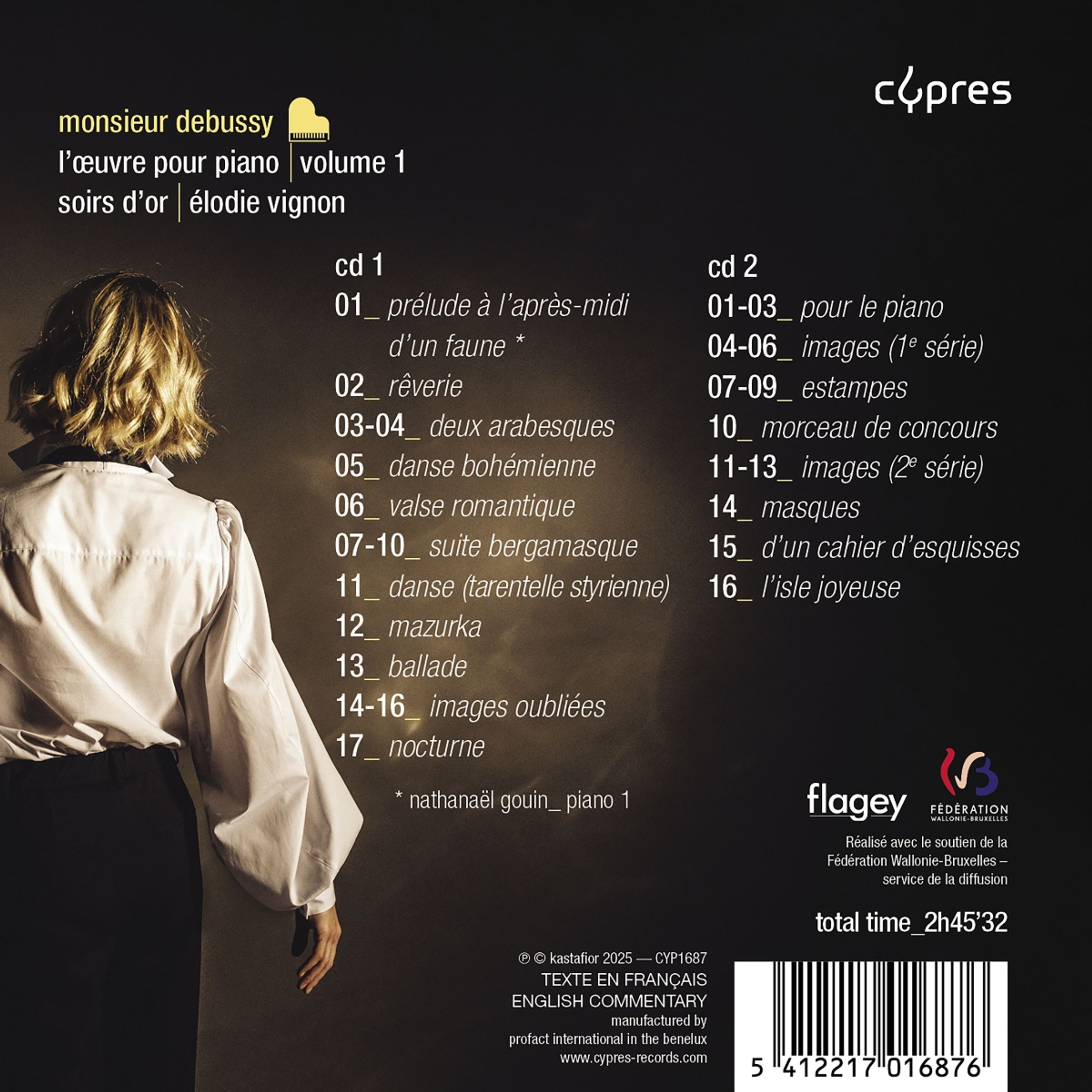 Für Élodie Vignon war die Entscheidung, das gesamte Klavierwerk von Debussy in chronologischer Reihenfolge aufzunehmen, das, was das Prélude à l’après-midi d’un faune zu Debussys Zeiten war: eine Offenbarung! Für sie ist das Spielen dieser Musik wie der Rückzug in einen Kokon, der nur ihr gehört.