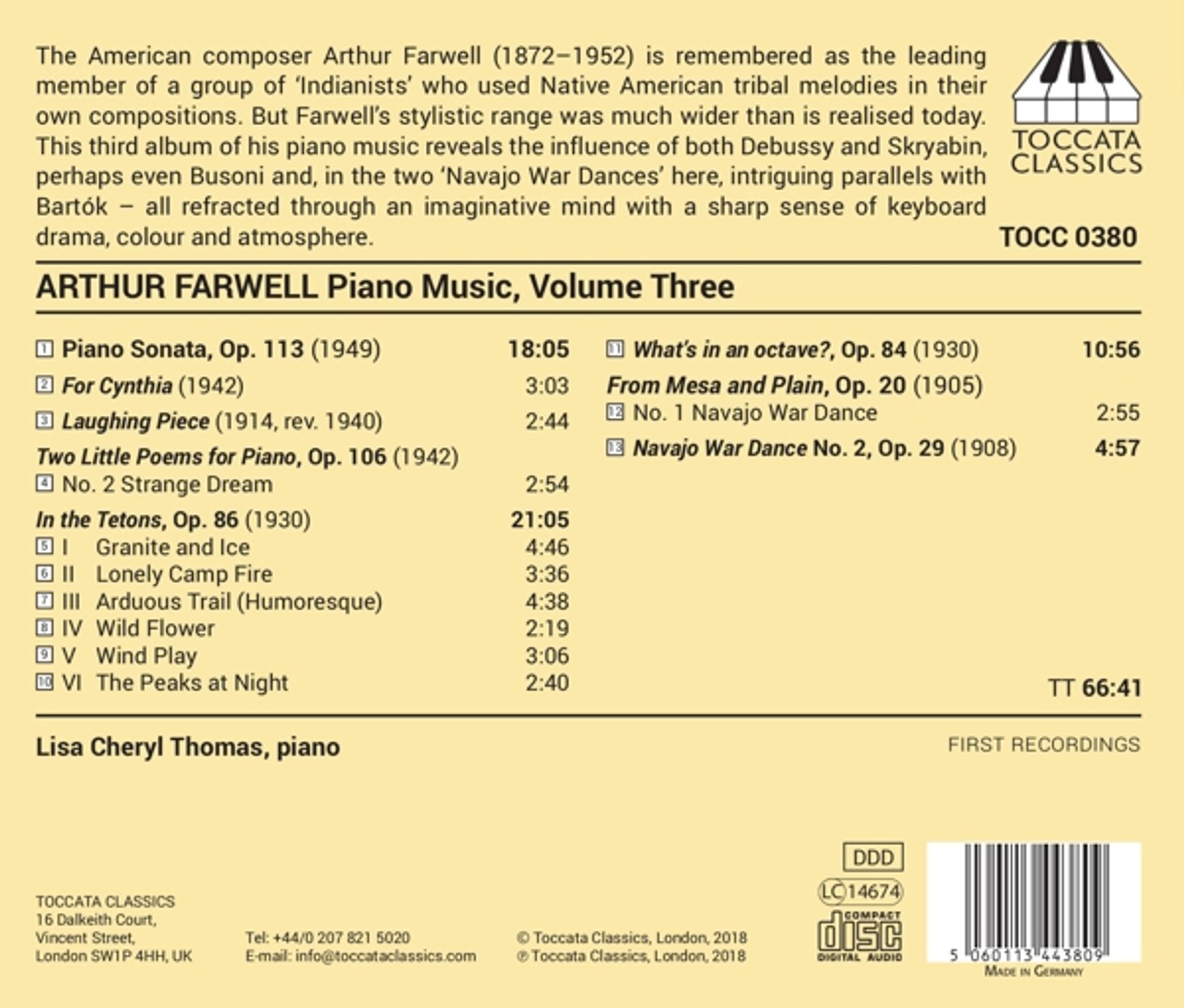 Doch Farwells stilistische Bandbreite war viel größer, als man heute annimmt. Dieses dritte Album seiner Klaviermusik zeigt den Einfluss von Debussy und Skrjabin, vielleicht sogar von Busoni, und in den beiden »Navajo War Dances« verblüffende Parallelen zu Bartók - alles gebrochen durch einen phantasievollen Geist mit einem scharfen Sinn für Tastendramatik, Farbe und Atmosphäre.