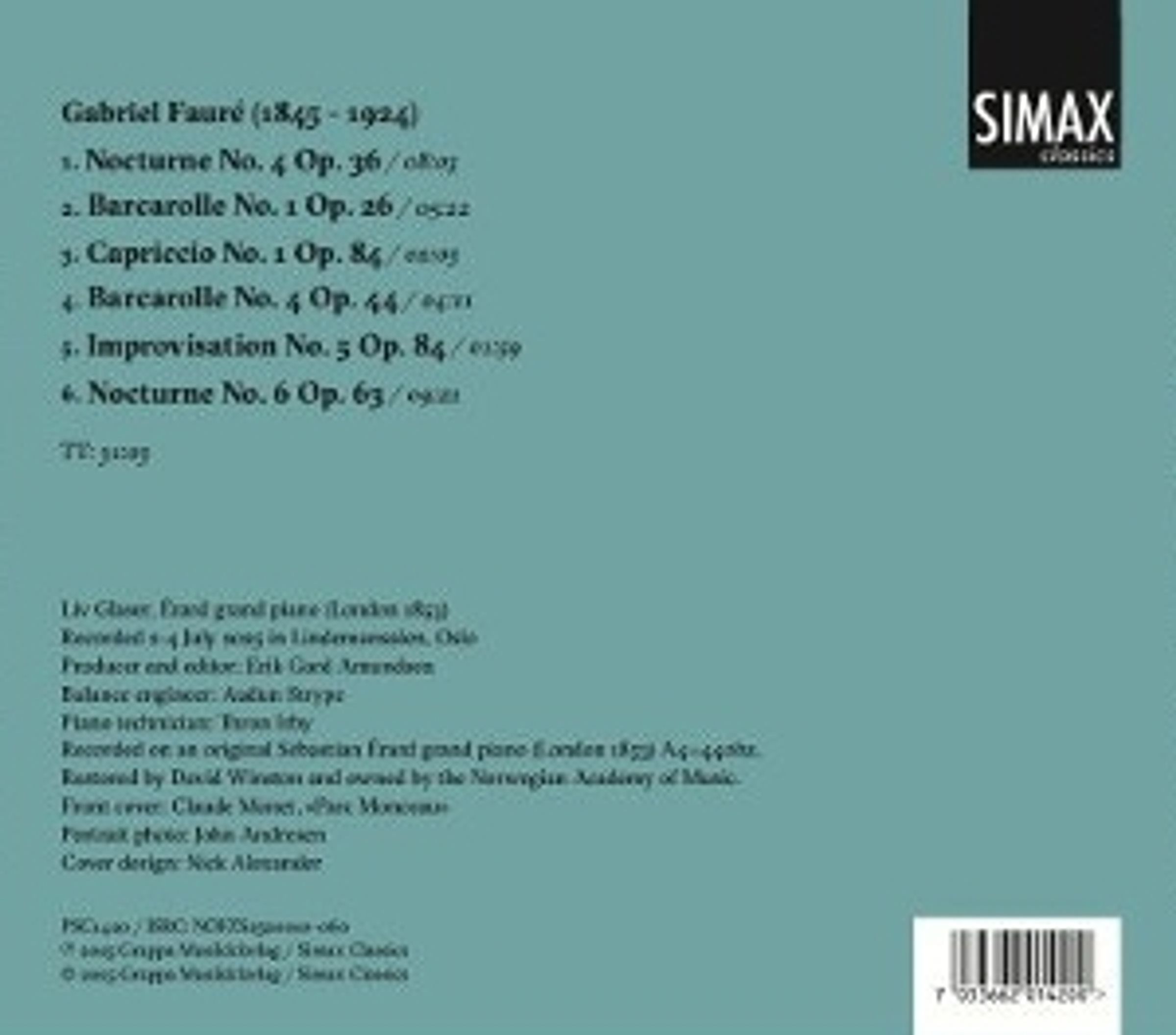Liv Glaser blickt auf eine bemerkenswerte Karriere als Pianistin zurück. Nach ihrem Studium in Frankreich und ihrem Konzertdebüt in Oslo tourte sie um die ganze Welt und avancierte zu einer wichtigen Botschafterin der norwegischen Musik. Bereits im Alter von 29 Jahren wurde ihr die königliche Verdienstmedaille in Gold verliehen, und ihre von Kritikern hochgelobten Konzerte und Aufnahmen festigten ihre Position als Solistin und Kammermusikerin von Weltklasse. Glasers Musikausbildung hat eine französische Prägung. In den 1950er Jahren studierte sie Klavier bei Vlado Perlemuter, der ein Schüler Ravels war, welcher wiederum Kompositionsschüler Faures gewesen war. Mit der Aufnahme "Un peu francais: Pieces selectionnees de Gabriel Faure" kehrt Glaser zu ihren französischen Klavierwurzeln zurück. Hier entfaltet sich Faures Farbpalette mit delikater Technik, und die Geschichte klingt im Instrument mit. Glaser spielt die Stücke auf einem französischen Érard-Flügel aus dem Jahr 1853.