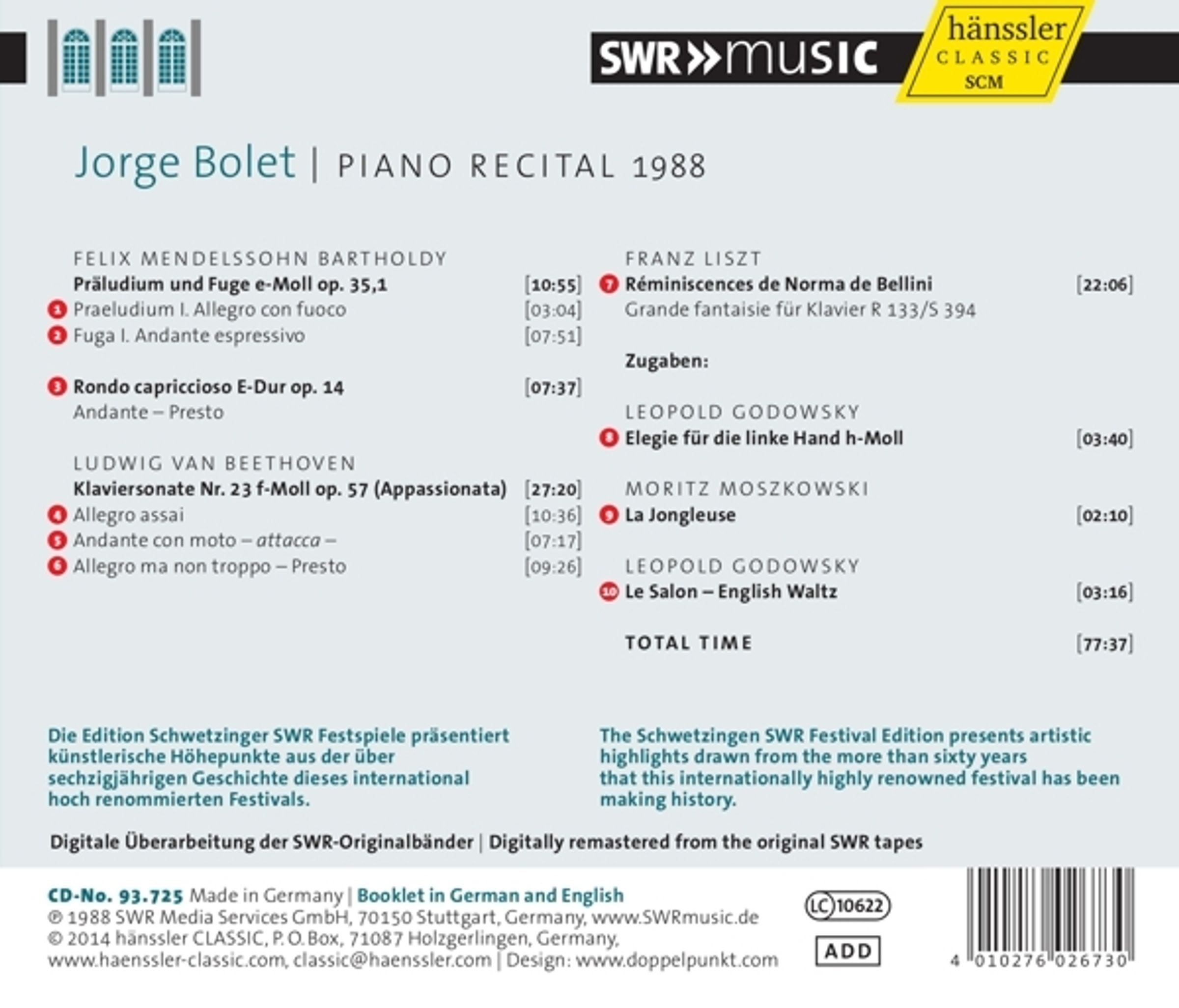 - Mit Jorge Bolet präsentiert die Reihe mit Konzerten von den Schwetzinger SWR Festspielen einen Pianisten, der als großer Liszt-Interpret in die Geschichte einging