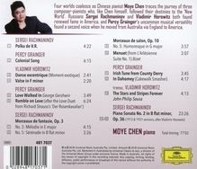 Seine Transkription von »The Stars and Stripes Forever« ist eines der schwierigsten Stücke, die jemals für Klavier geschrieben wurden. Rachmaninow ist einer der vielen Lieblinge von Moye Chen, und er präsentiert eine Reihe von Stücken aus dem Schaffen dieses Komponisten – die wunderschöne Melodie, die freche Transkription des »Menuetts« aus Bizets L'Arlesienne und die grandiose zweite Sonate. Hören Sie sich die letzten Minuten des Finales an!