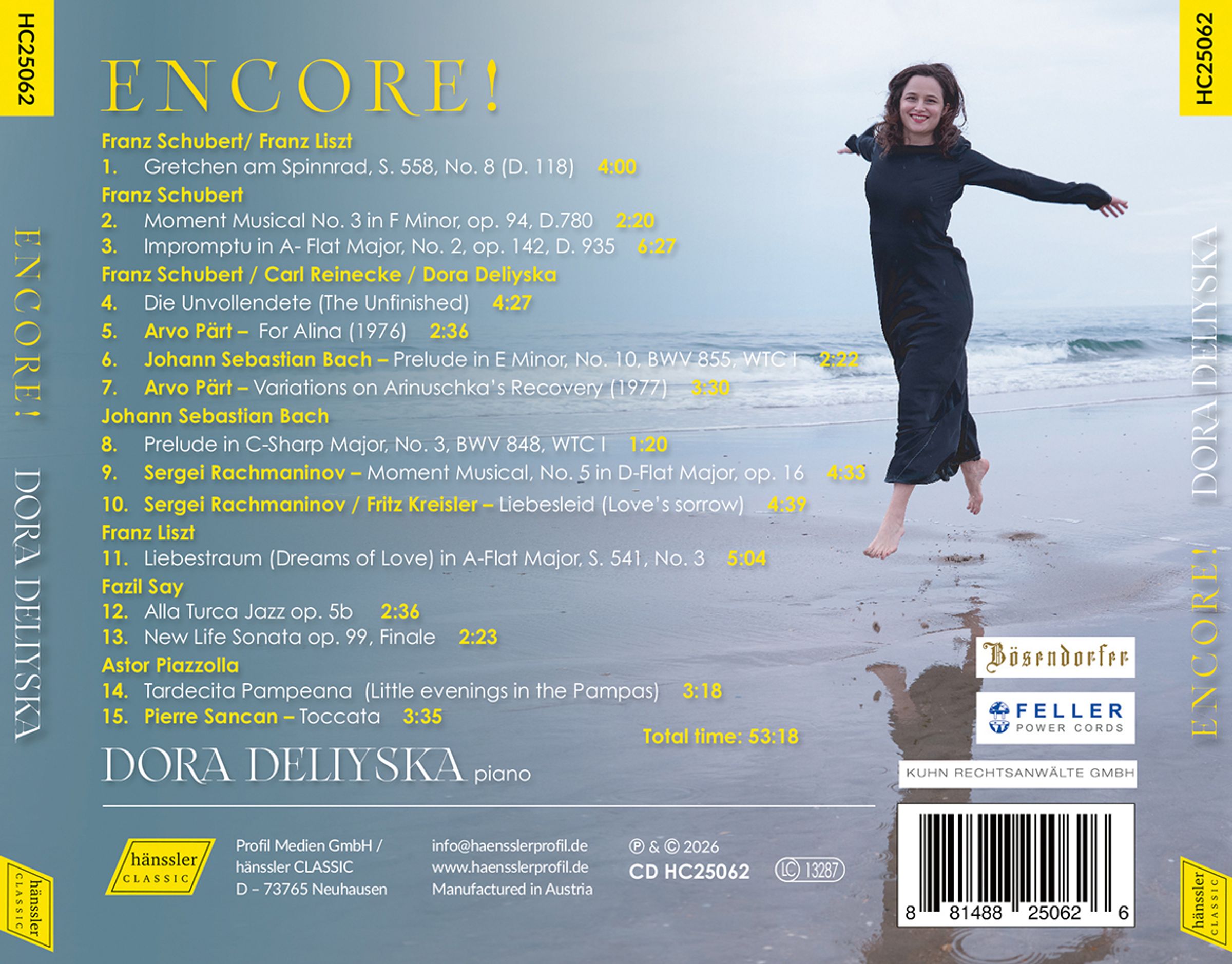 »Die Programme von Dora Deliyska sind häufig einem bestimmten Thema gewidmet, welches die einzelnen Stücke miteinander verbindet. Das trifft auf die vorliegende CD bei oberflächlicher Betrachtung nicht zu. Es wäre aber nicht Dora Deliyska, wenn es nicht doch eine – vielleicht geheimnisvolle – Verbindung zwischen den dargebotenen Stücken gibt.« Christian KuhnMehr von Franz Schubert