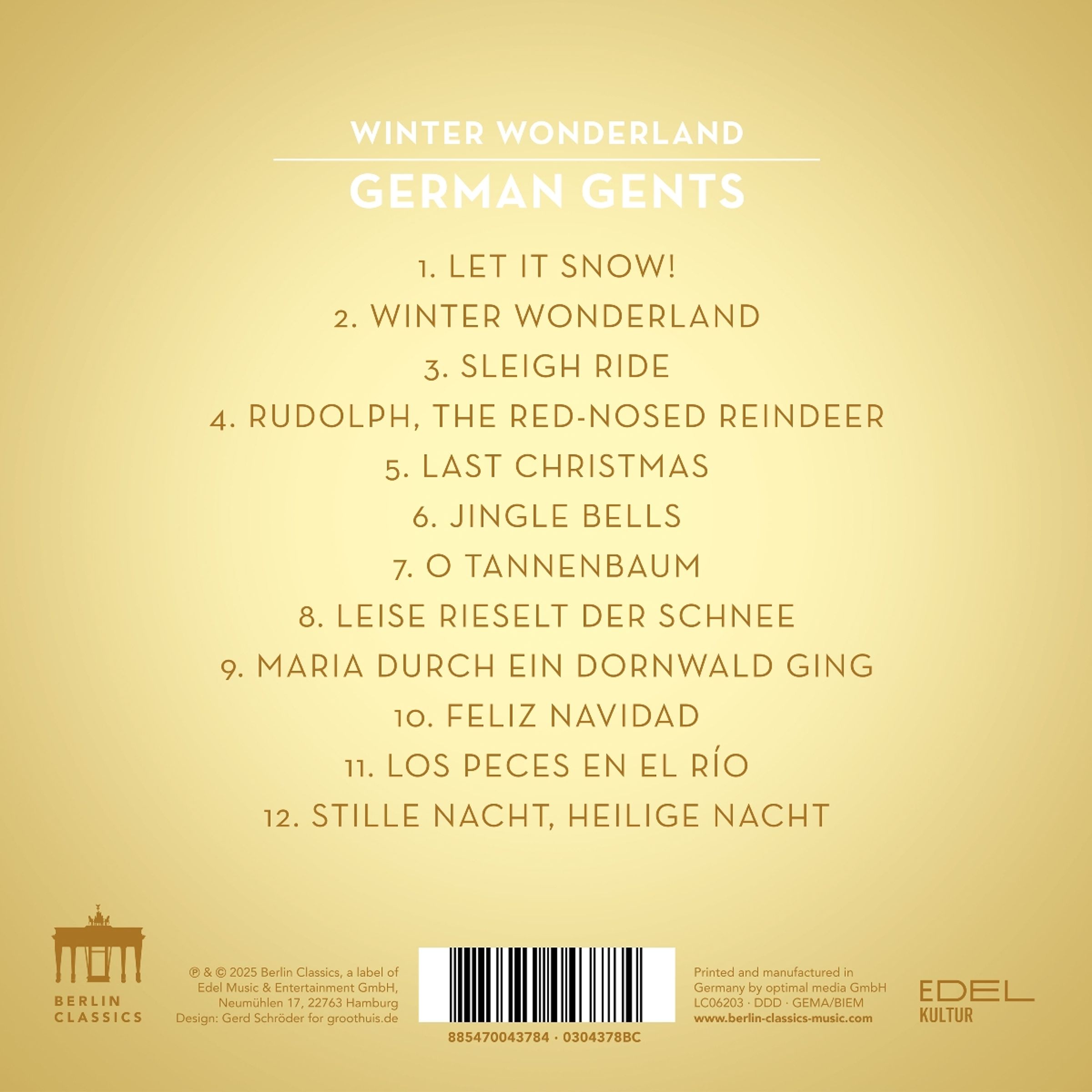 German Gents ist ein Phänomen unter den Vokalensembles. Die vier Sänger interpretieren alle Stilrichtungen und Genres perfekt – und erreichen ihre Fans bereits mit über 500.000 Followern in den sozialen Medien. Ihr Album enthält eine Mischung aus traditionellen deutschen und internationalen Weihnachtsliedern, ergänzt durch zeitlose Klassiker im A-cappella-Stil. Die meisterhafte Darbietung festlicher Melodien spiegelt sowohl die besinnliche Stimmung als auch die freudige Atmosphäre der Weihnachtszeit wider.