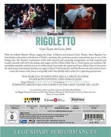 Der bucklige Hofnarr des Herzogs von Mantua wird schließlich zur Titelfigur in Verdis Oper. Die Aufführung aus dem Gran Teatre del Liceu von 2004 wird vom spanischen Dirigenten Jesus-Lopez Cobos geleitet. Graham Vicks Inszenierung sowie Paul Browns Bühnenbild und Kostüme weichen von der realistischen Bildwelt ab, nichts wird offensichtlich dargestellt.