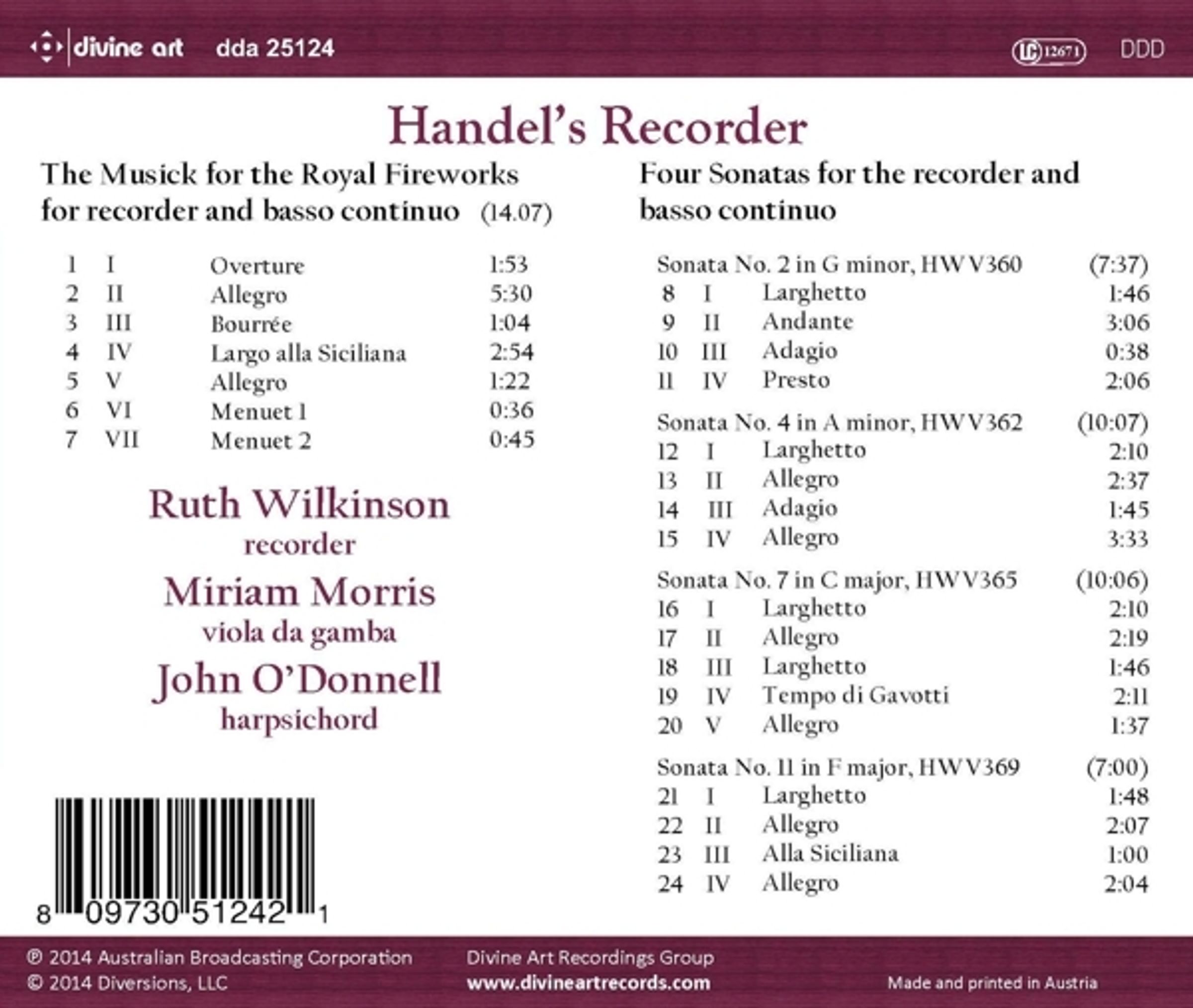 Georg Friedrich Händel: Sonaten für Blockflöte & Bc auf CD