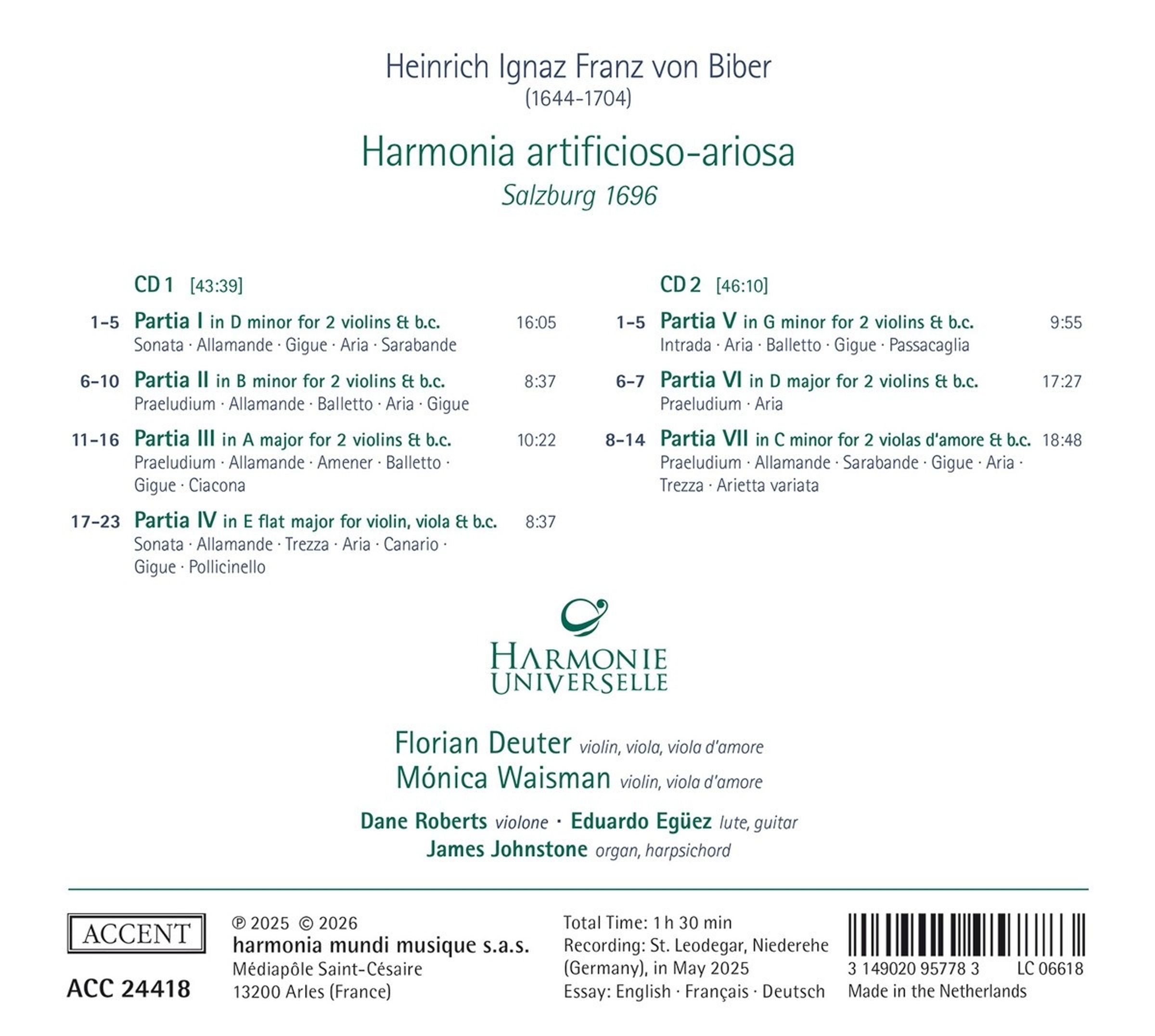 Heinrich Ignaz Biber: Harmonia artificiosa-ariosa (Partiten 1-7) auf 2 CDs