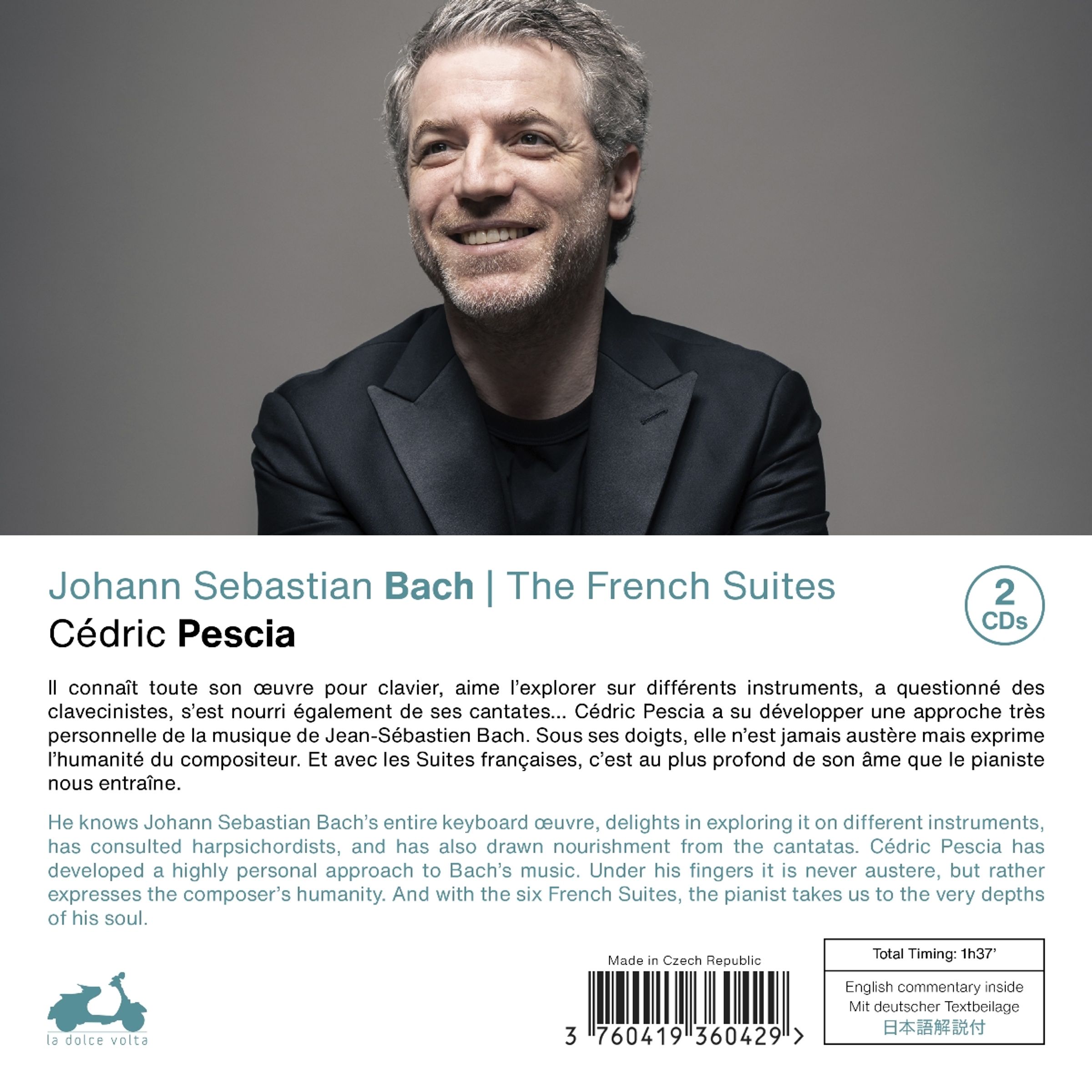 Er kennt das gesamte Klavierwerk Johann Sebastian Bachs, erkundet es mit Begeisterung auf verschiedenen Instrumenten, hat sich mit Cembalisten beraten und sich auch von den Kantaten inspirieren lassen. Cédric Pescia hat einen sehr persönlichen Zugang zu Bachs Musik entwickelt. Unter seinen Fingern klingt sie niemals streng, sondern bringt vielmehr die Menschlichkeit des Komponisten zum Ausdruck. Und mit den sechs französischen Suiten entführt uns der Pianist in die Tiefen seiner Seele.