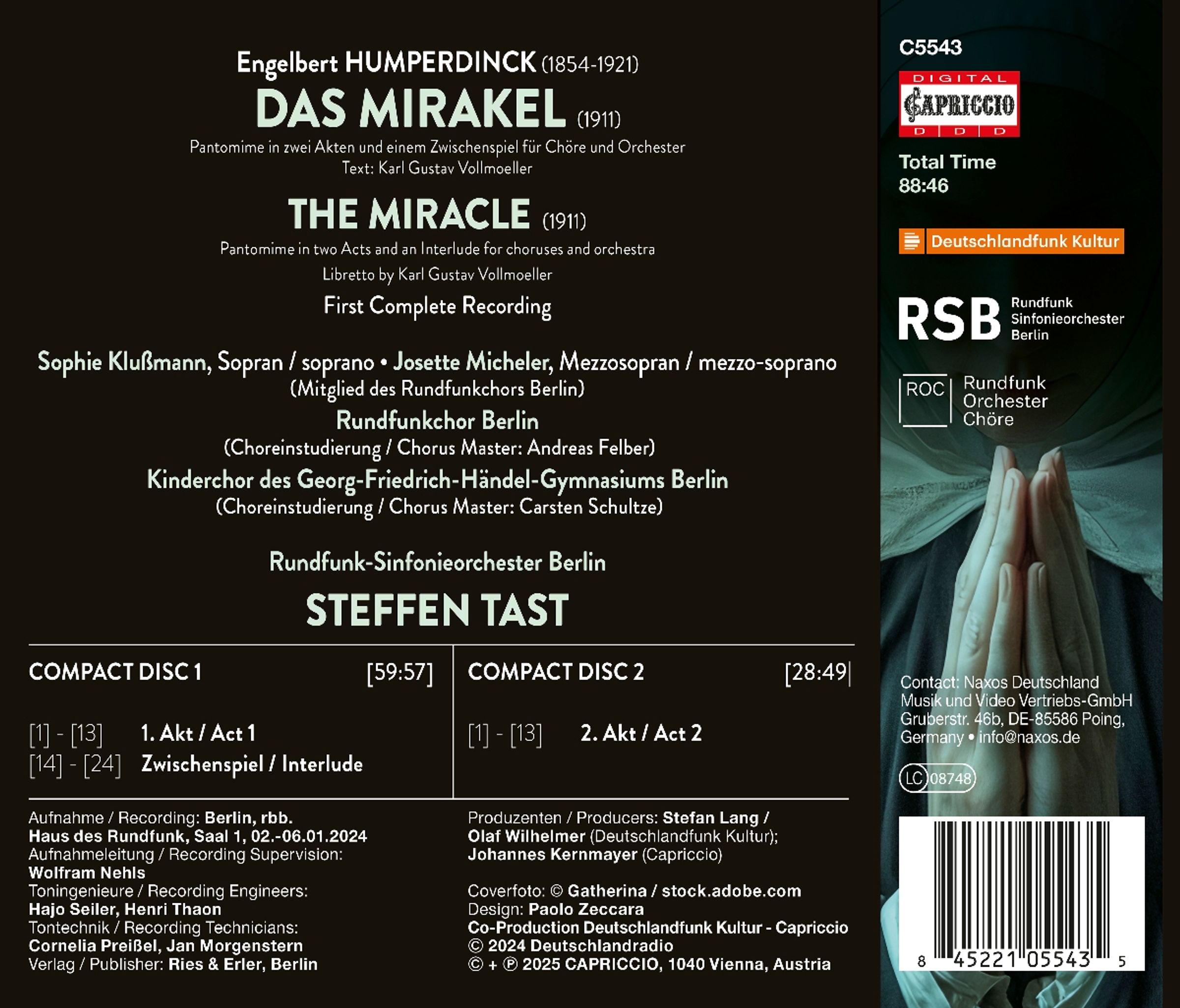 Engelbert Humperdinck: Das Mirakel (Pantomime in 2 Akten und 1 Zwischenspiel für Chöre & Orchester) auf 2 CDs
