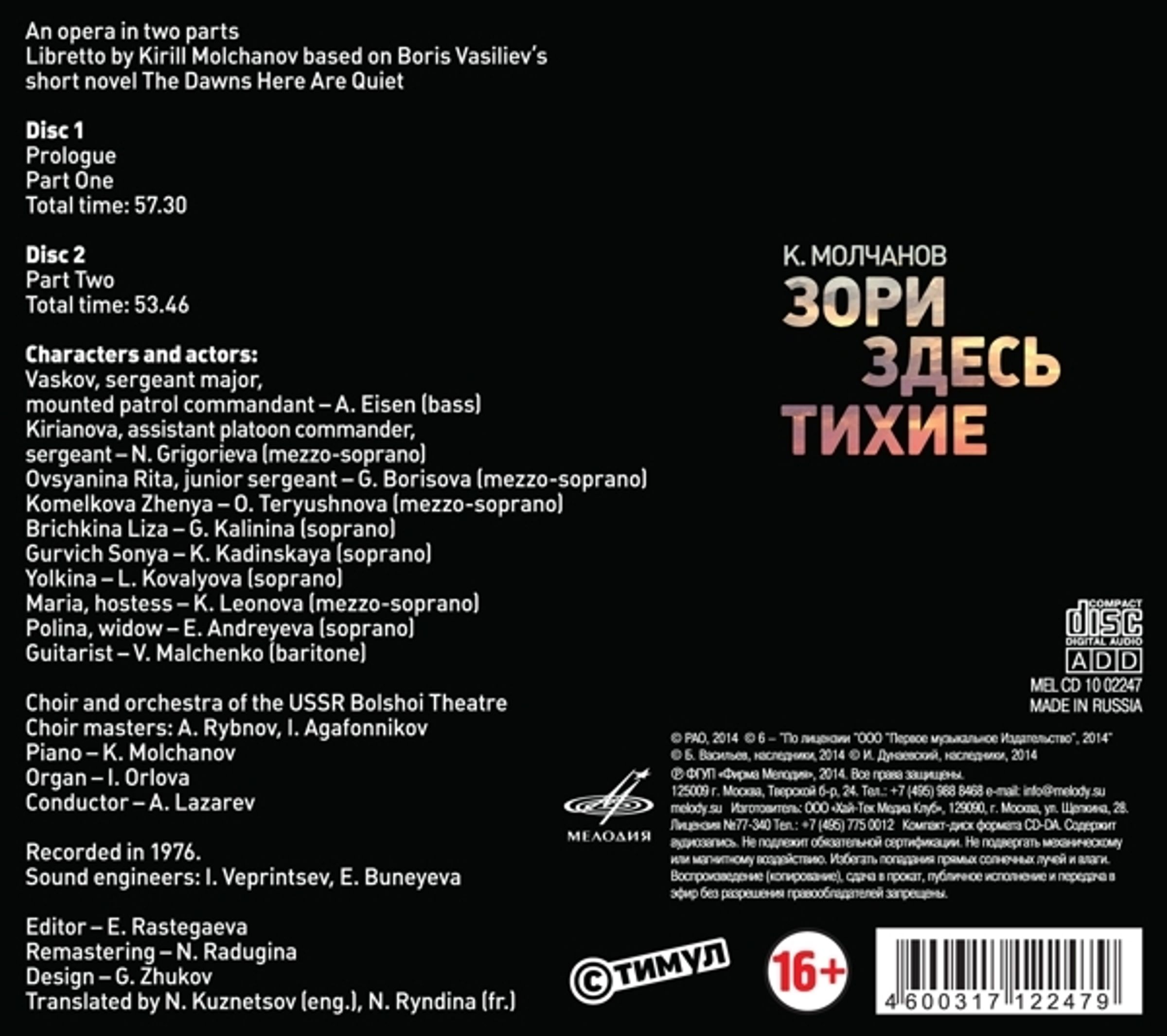 Kirill Molchanov: The Dawns here are quiet (Oper in 2 Akten) auf 2 CDs