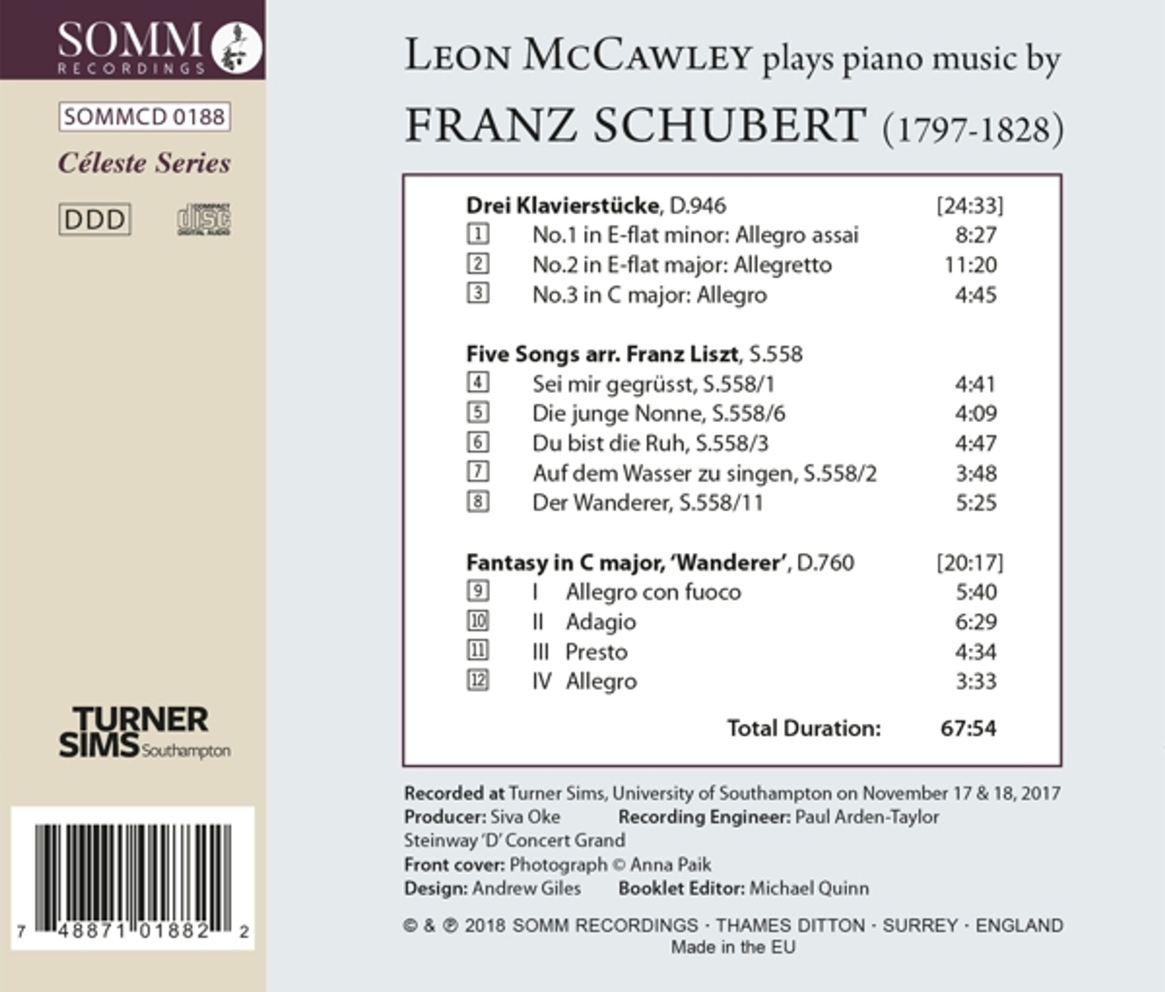 Die neue Aufnahme ist das jüngste Angebot einer hochgelobten Partnerschaft zwischen SOMM und McCawley, in deren Rahmen bereits frühere Aufnahmen Haydn, Chopin, Schumann, Brahms, Rachmaninov und Samuel Barber gewidmet waren. Leon McCawley ist seit seinem Sieg beim Internationalen Beethoven-Klavierwettbewerb 1993, bei dem er auch den zweiten Preis beim Internationalen Klavierwettbewerb in Leeds errang, einer der führenden Pianisten Großbritanniens.