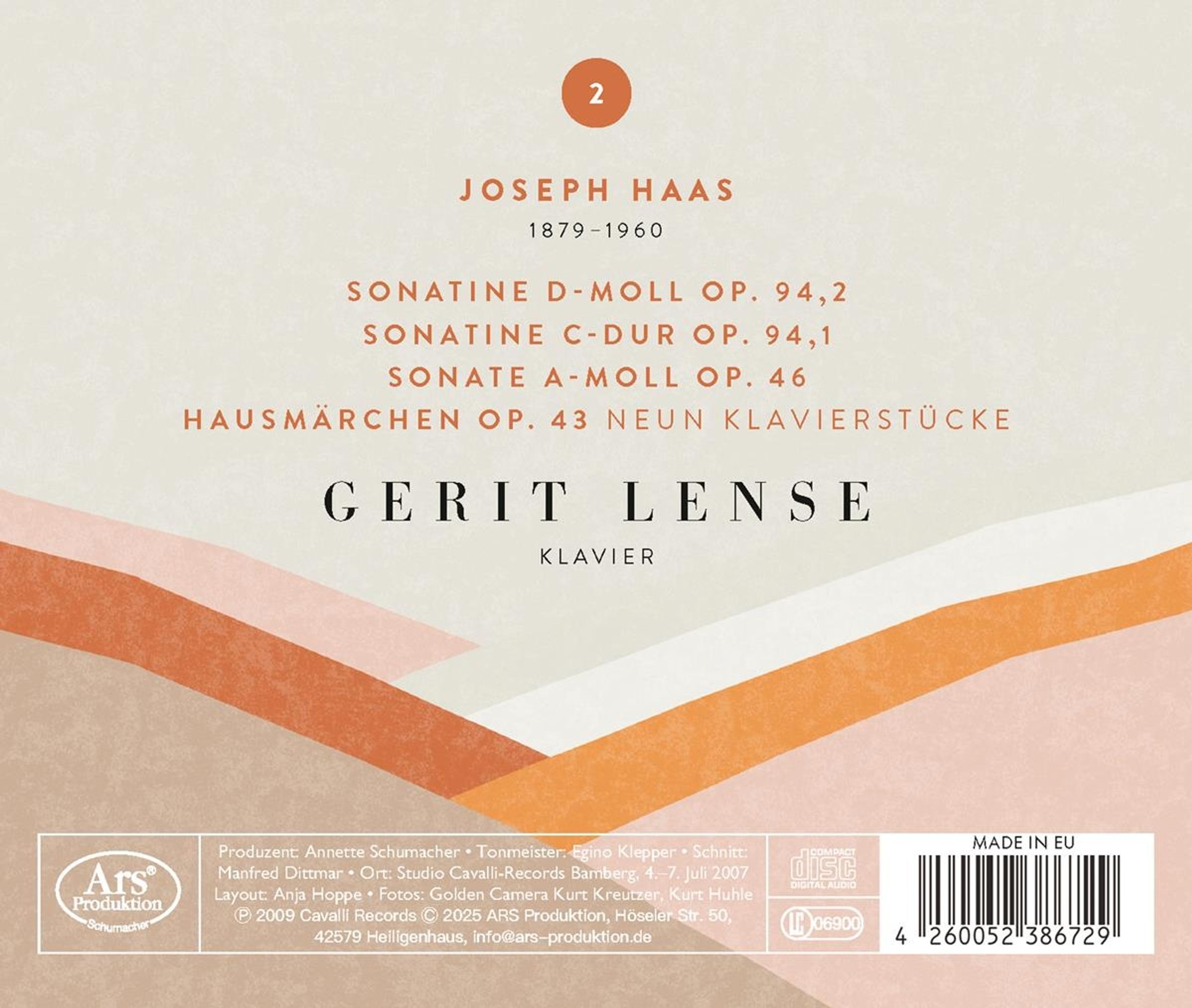 "GERIT LENSE KLAVIER 2 JOSEPH HAAS II" in moderner Schrift, darunter wellenförmige Farbbänder in Erdtönen., CD