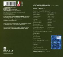 Giovanni Rinaldi wurde 1840 in Reggiolo in der Emilia-Romagna geboren und studierte Klavier in Correggio und Mailand. Im ersten Teil seiner Karriere widmete er sich einer intensiven Konzertaktivität in Europa, so dass er als »italienischer Chopin« bezeichnet wurde. 1871 zog er nach Genua, der Stadt, in der er den größten Teil seiner künstlerischen Tätigkeit ausübte.