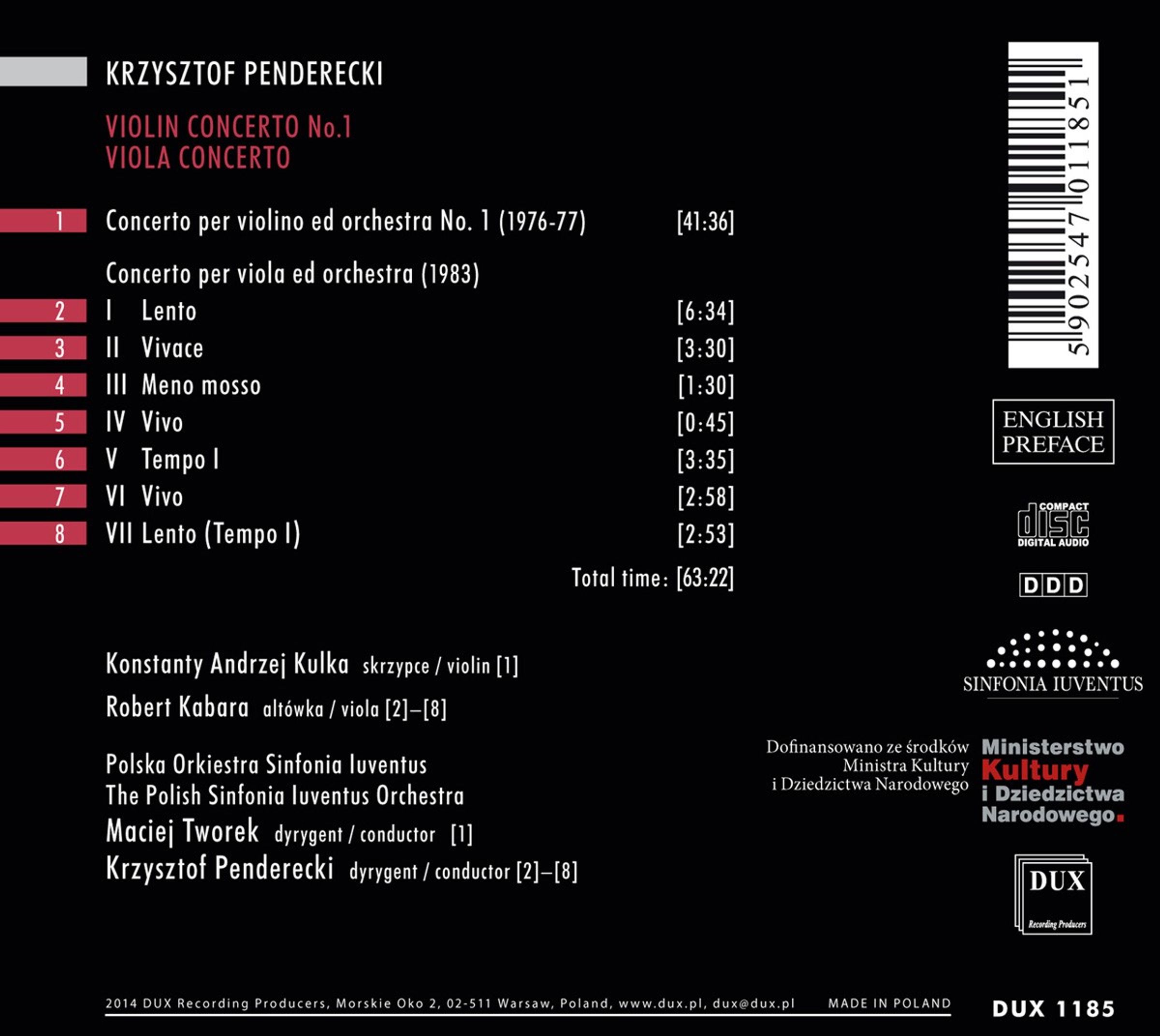 - Konstanty Andrzej Kulka, Robert Kabara, Polish Sinfonia Iuventus Orchestra, Maciej Tworek, Krzysztof Penderecki