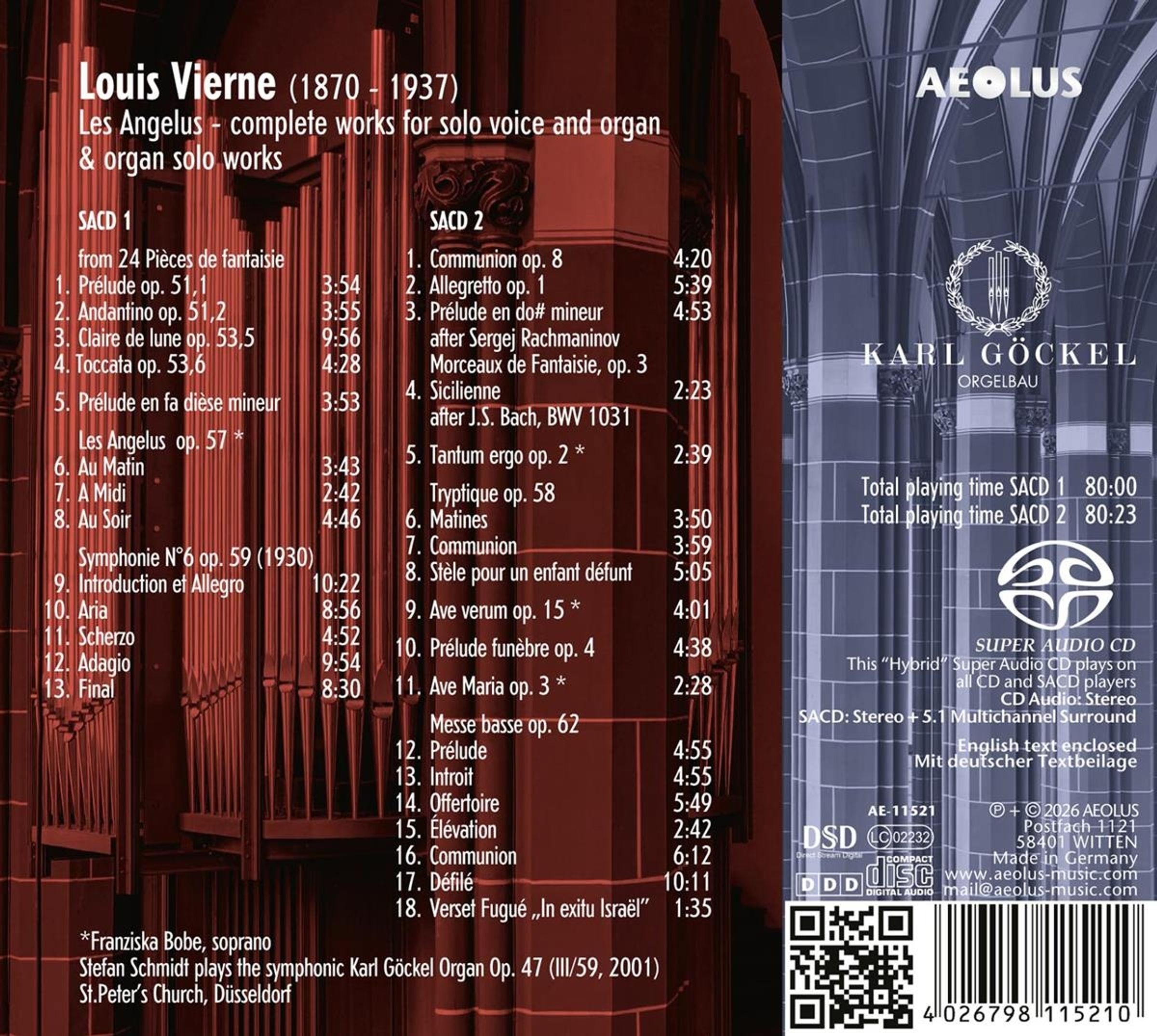 Louis Vierne: Werke für Sopran und Orgel & Orgelwerke "Les Angelus" auf 2 Super Audio CDs