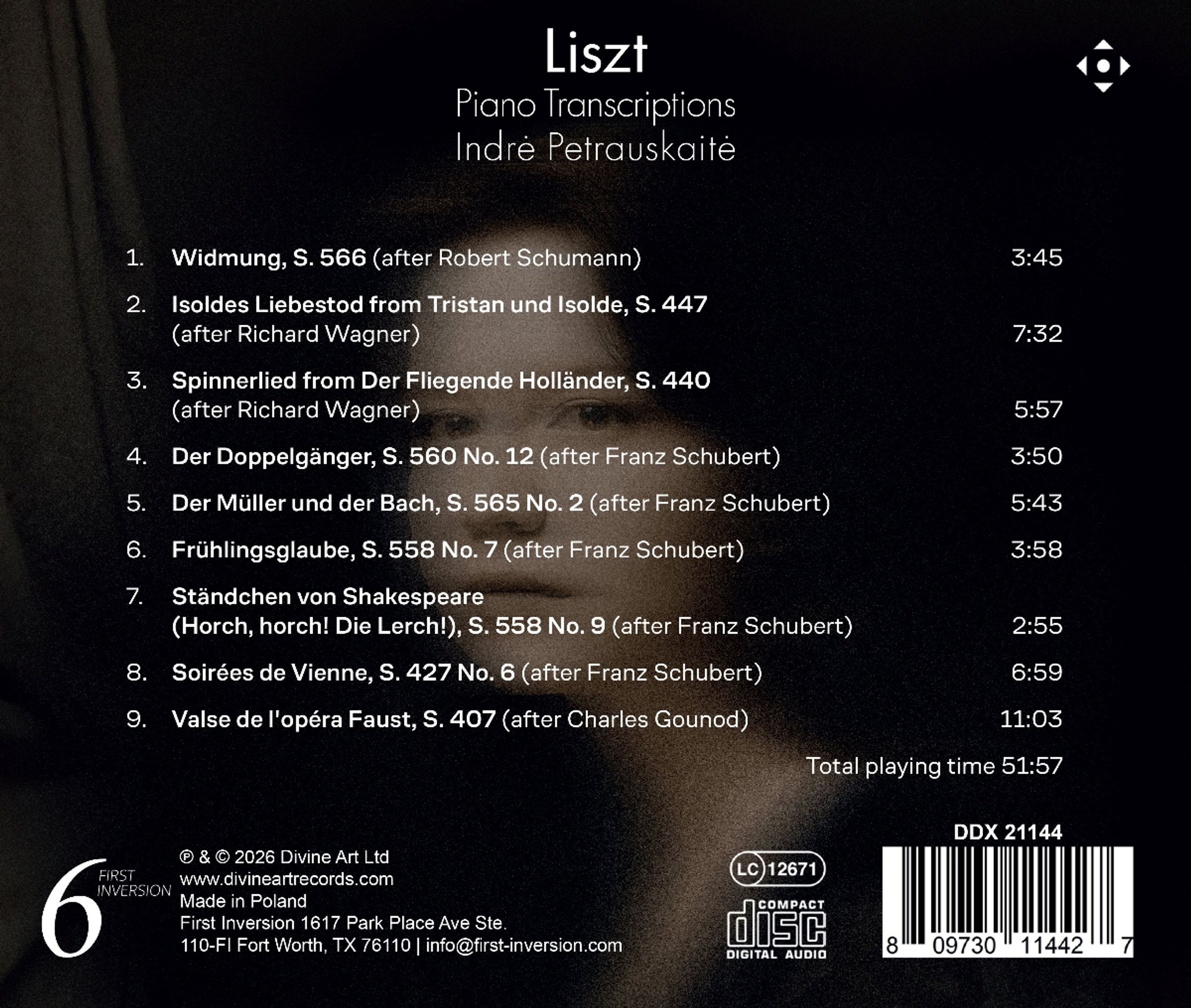 Dieses Album enthält beliebte Klaviertranskriptionen von Franz Liszt von Liedern und Arien von Robert Schumann, Richard Wagner, Franz Schubert und Charles Gounod, gespielt von der litauischen Pianistin Indre Petrauskaite. Während seines gesamten Lebens und durch sein Werk teilte Franz Liszt seine tiefe Liebe zur Musik seiner Komponistenkollegen und arrangierte ihre Werke für das Klavier, das wichtigste Instrument für das Musizieren zu Hause im 19. Jahrhundert. Er wollte den Menschen helfen, beliebte Musikwerke in privater Atmosphäre zu geniessen, als der Zugang zu Orchestern und Konzerten noch eingeschränkt war. Liszt ist einer der größten Transkribenten des 19. Jahrhunderts und vielleicht sogar aller Zeiten. Fast die Hälfte seines Schaffens besteht aus Arrangements, von strengen Transkriptionen bis hin zu frei neu komponierten Paraphrasen.