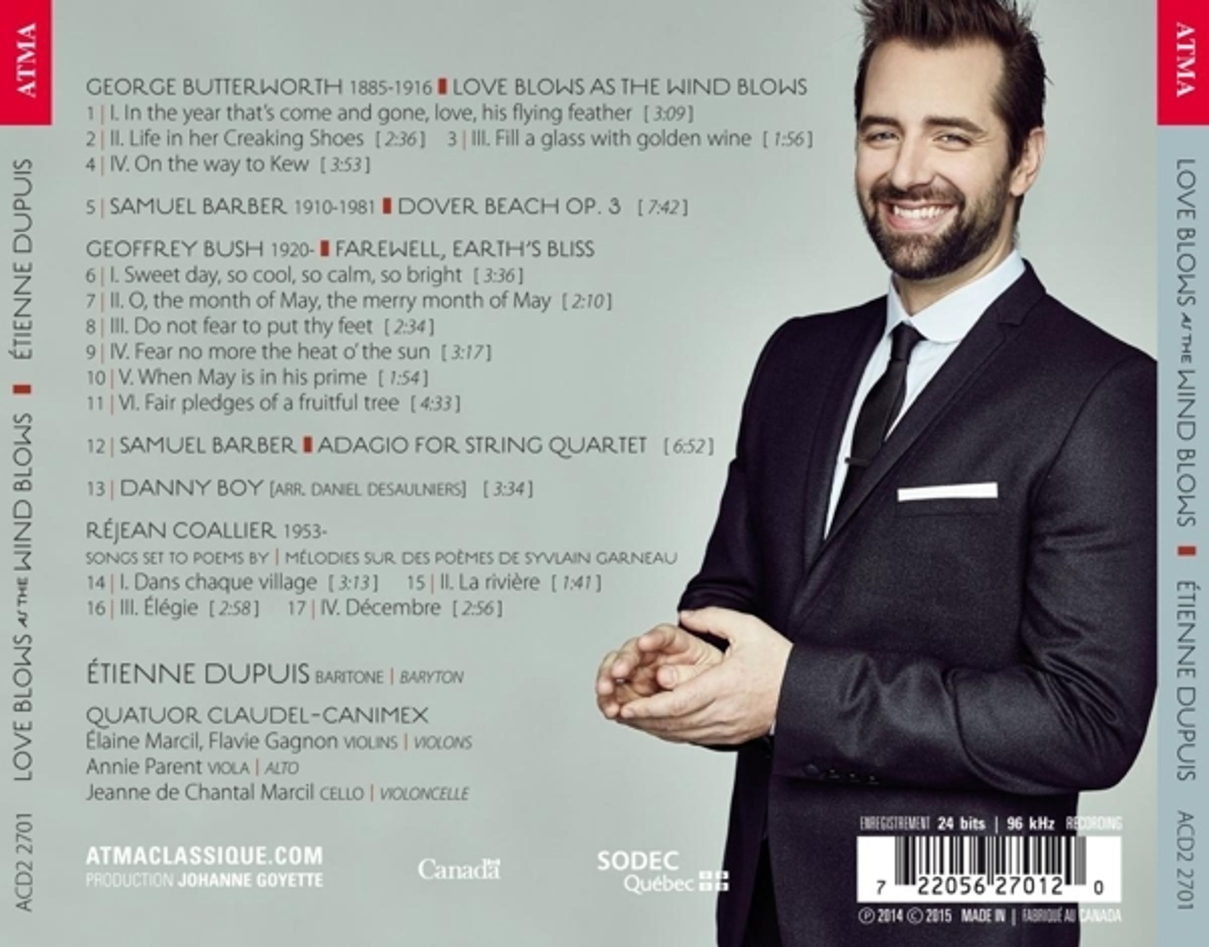 Love Blows as the Wind Blows, ein wunderschöner Zyklus von Melodien des Komponisten George Butterworth, ist der Titel des ersten Albums des Baritons Étienne Dupuis.