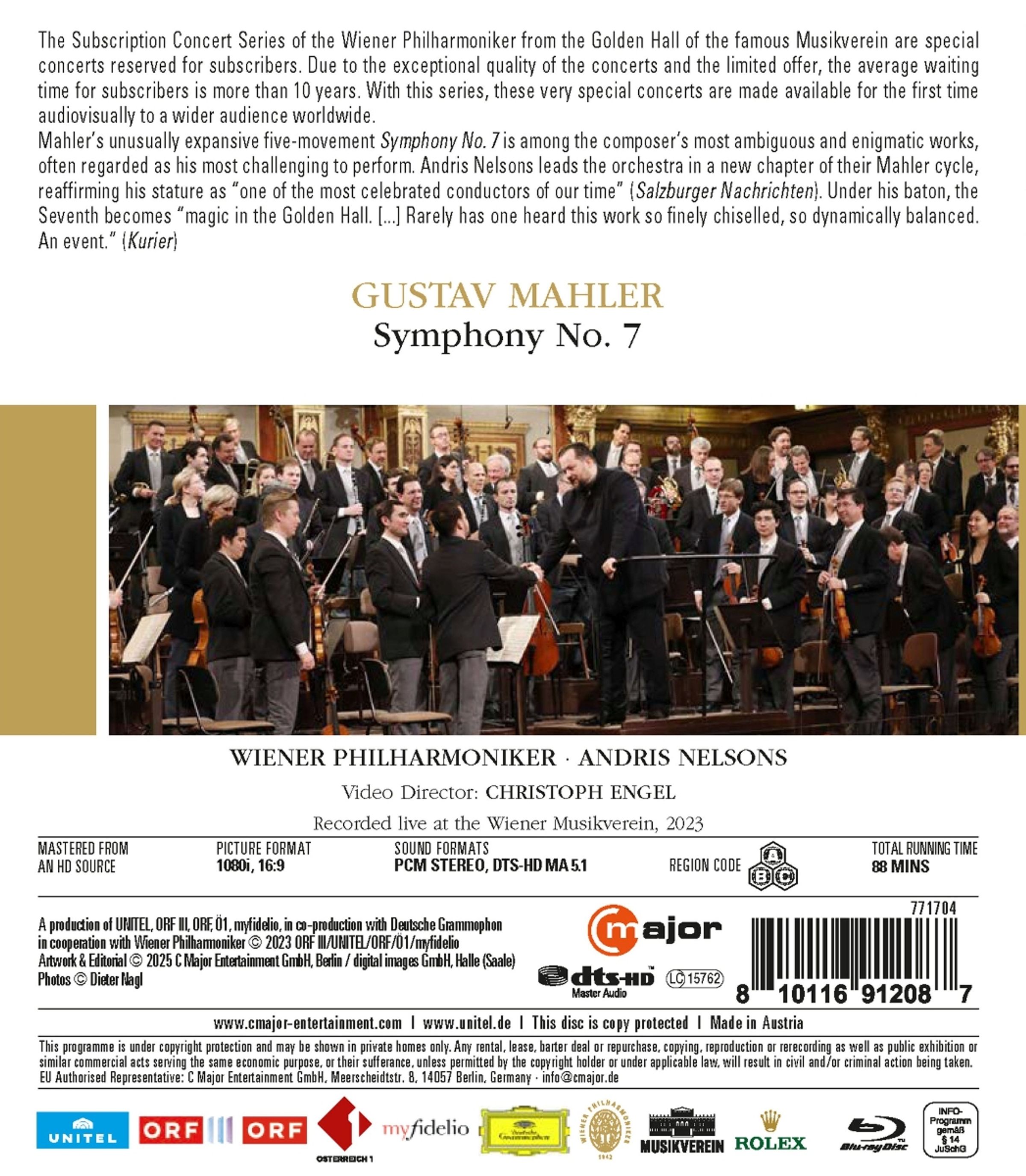 Die Abonnementkonzerte der Wiener Philharmoniker im Goldenen Saal des berühmten Musikvereins sind Sonderkonzerte, die Abonnenten vorbehalten sind. Es sind wahrhaft exklusive Ereignisse, denn auf ein Abonnent wartet man im Durchschnitt mehr als 10 Jahre. Diese Reihe macht diese ganz besonderen musikalischen Momente erstmals einem breiteren Publikum weltweit in audiovisueller Form zugänglich. Gustav Mahlers ungewöhnlich umfangreiche fünfteilige Sinfonie Nr. 7 ist eines der vieldeutigsten und rätselhaftesten Werke des Komponisten und wird oft als sein schwierigstes Werk angesehen. Andris Nelsons führt das Orchester in ein neues Kapitel seines Mahler-Zyklus und bestätigt damit seinen Status als einer der am meisten gefeierten Dirigenten unserer Zeit. Unter seiner Leitung verwandelt sich die komplexe Sinfonie Nr. 7 förmlich in klangliche Magie. Selten wurde dieses Werk mit solcher Präzision und Dynamik aufgeführt, selten hat man dieses Werk so fein ausgearbeitet und dynamisch ausgewogen gehört.