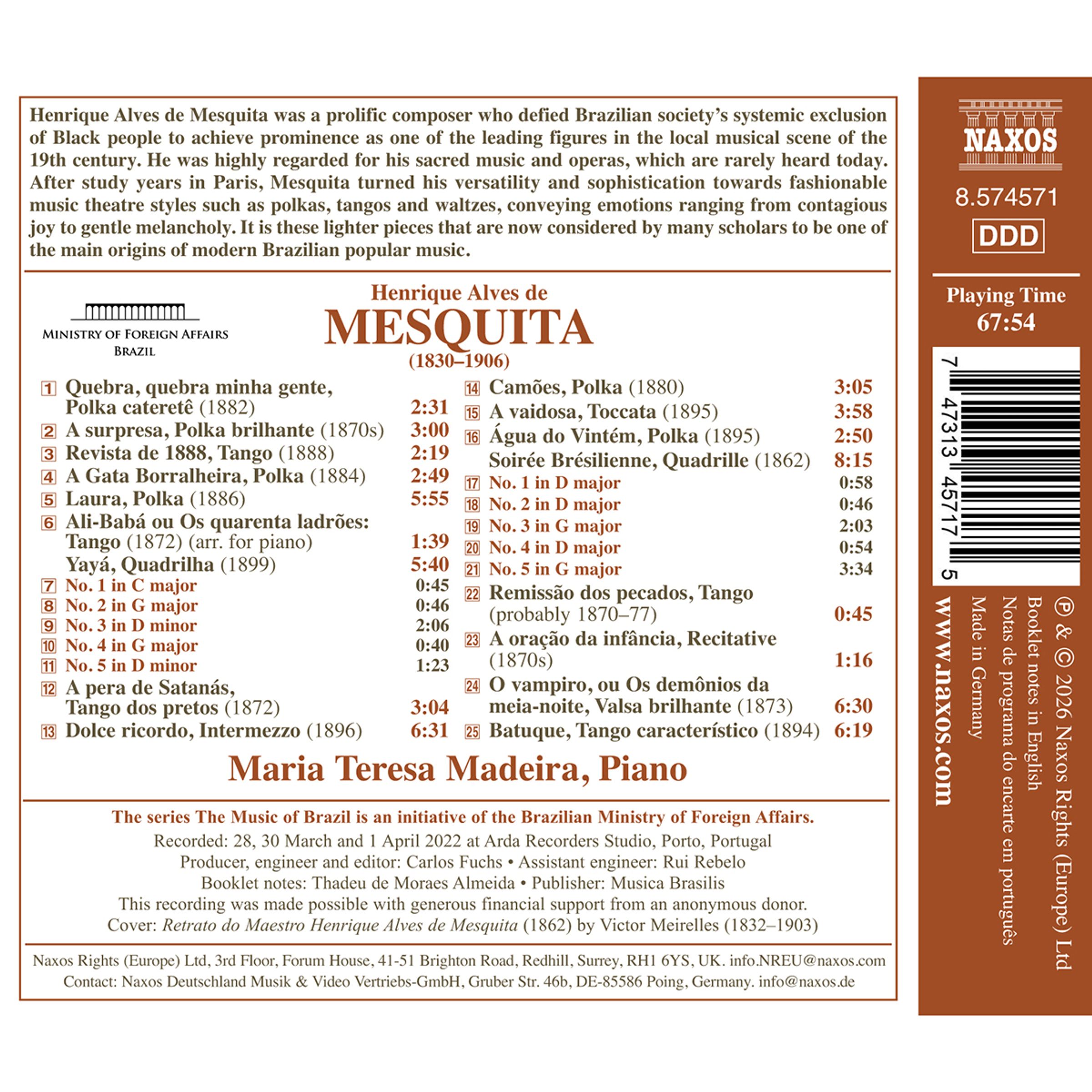 Henrique Alves de Mesquita war ein produktiver Komponist, der sich gegen die systematische Ausgrenzung schwarzer Menschen in der brasilianischen Gesellschaft auflehnte und sich als eine der führenden Figuren der lokalen Musikszene des 19. Jahrhunderts einen Namen machte. Er wurde für seine geistliche Musik und seine Opern hochgeschätzt, die heute nur noch selten zu hören sind. Nach seinem Studium in Paris wandte Mesquita seine Vielseitigkeit und Raffinesse modischen Musiktheaterstilen wie Polkas, Tangos und Walzern zu und vermittelte Emotionen, die von ansteckender Freude bis zu sanfter Melancholie reichten. Es sind diese leichteren Stücke, die heute von vielen Wissenschaftlern als einer der Hauptursprünge der modernen brasilianischen Populärmusik angesehen werden.