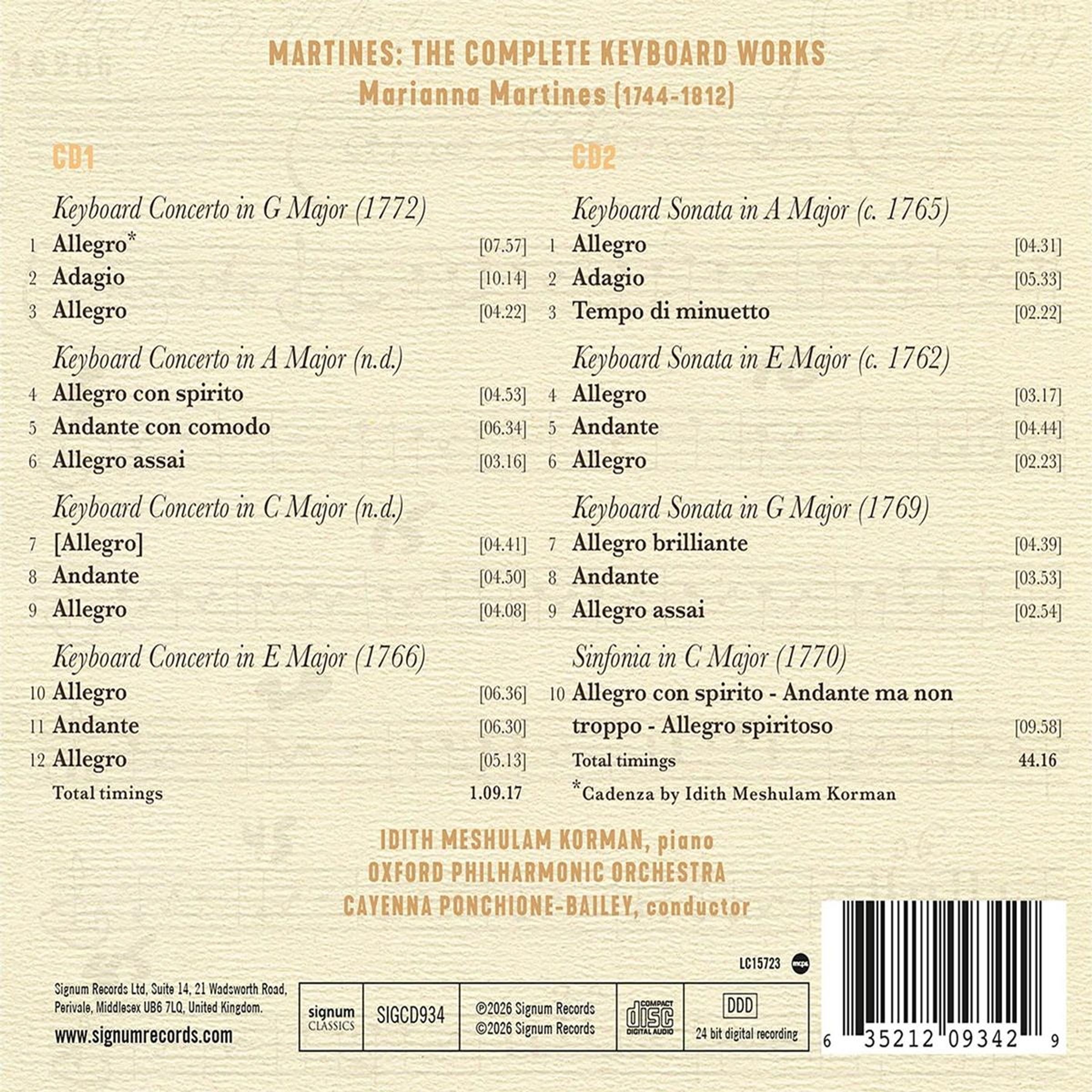 - Idith Meshulam Korman (Klavier), Oxford Philharmonic Orchestra, Cayenna Ponchione-Bailey