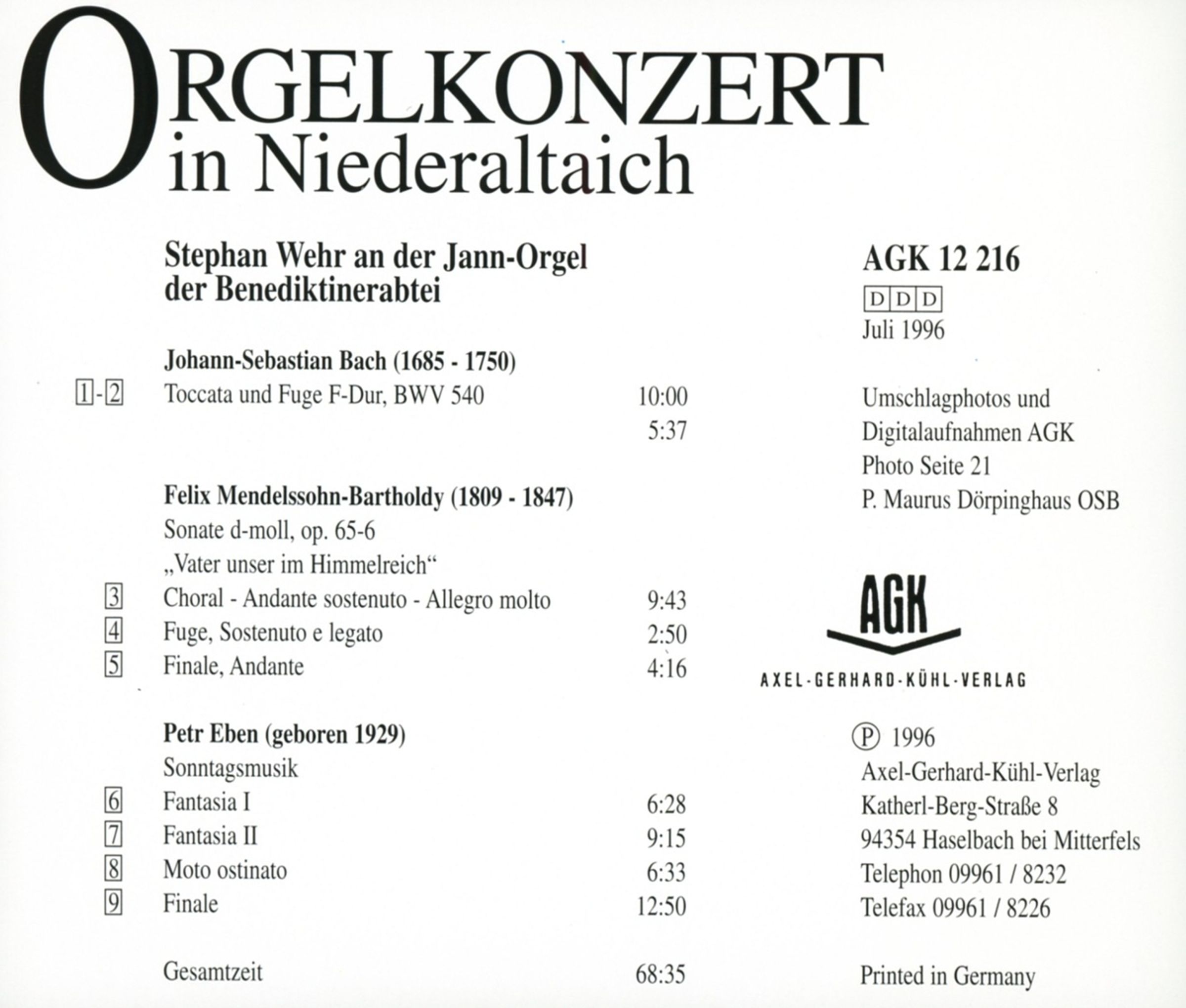 Stephan Wehr - Orgelkonzert in Niederaltaich auf CD