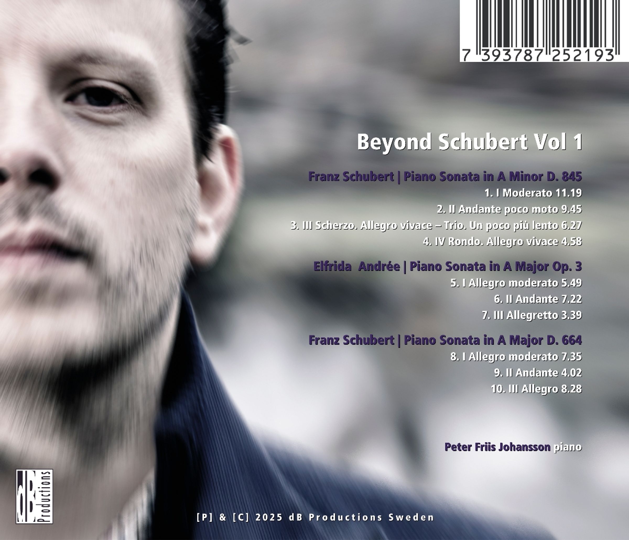 Peter Friis Johansson ist derzeit einer der brillantesten Pianisten Schwedens. Seit mehr als einem Jahrzehnt wird er nicht zuletzt für seine Zyklen mit allen Klaviersonaten von Franz Schubert geschätzt. Nun, da er endlich begonnen hat, sie unter dem Titel „Beyond Schubert” aufzunehmen, verfolgt er dabei einen ungewöhnlichen Ansatz. Er spielt nicht nur nach Originalmanuskripten und vollendet sogar unvollendete Sonaten, sondern kombiniert einige der Sonaten auch mit hochwertigen Werken schwedischer Komponisten, die in irgendeiner Weise mit Schubert in Verbindung stehen. Auf dieser ersten Veröffentlichung steht die bezaubernde A-Dur-Sonate op. 3 der schwedischen Grande Dame Elfrida Andrée (1841–1929) neben Schuberts ebenso bezaubernder Sonate in derselben Tonart (D 664). Das Album beginnt jedoch mit Schuberts großer Sonate a-Moll D. 845, spektakulär interpretiert von Peter Friis Johansson.
