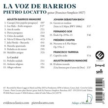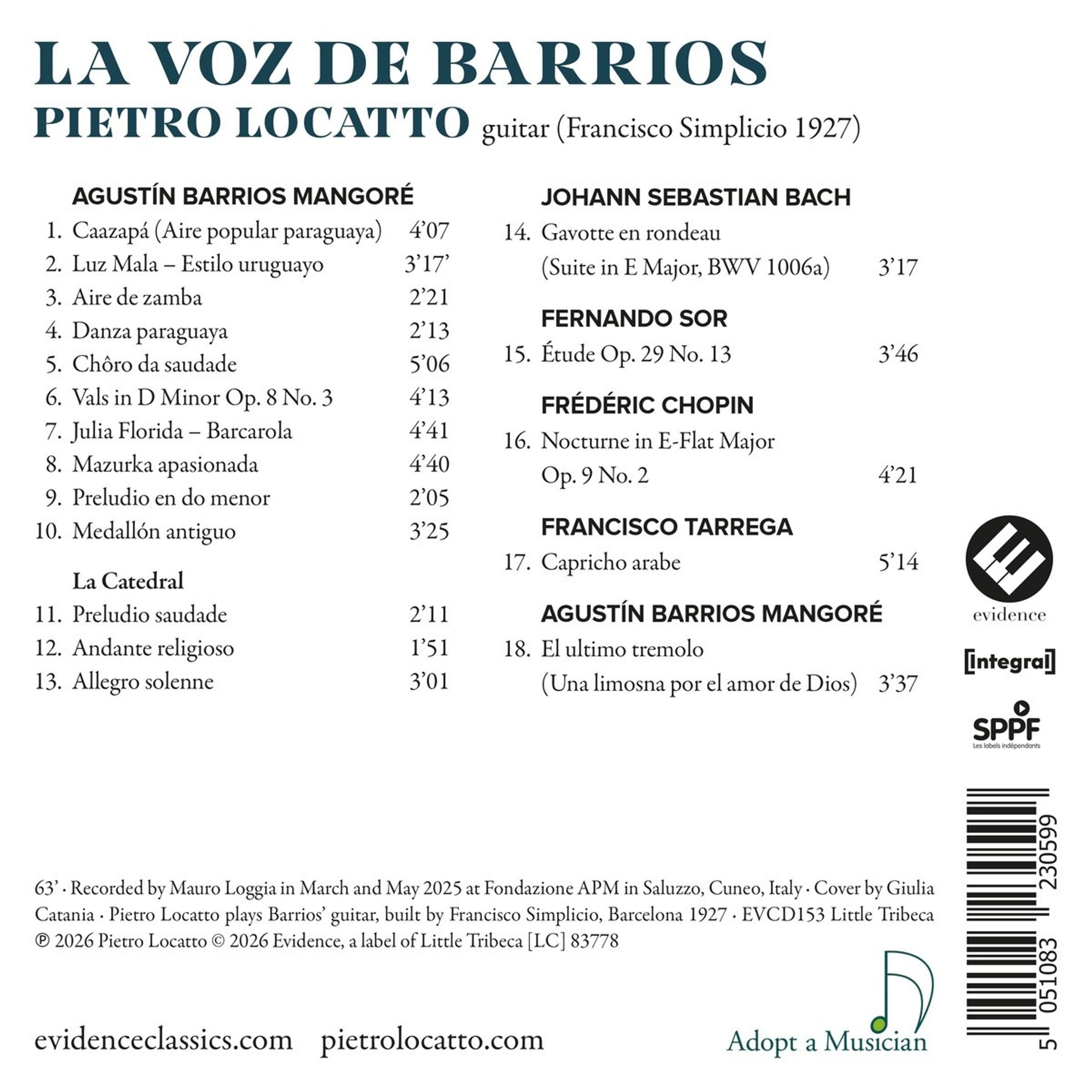 Der große paraguayische Gitarrenvirtuose und Komponist Agustín Barrios Mangoré schätzte ein Instrument besonders: seine 1927 von Francisco Simplicio gefertigte Gitarre, die der Star des vorliegenden Albums ist. Die ausgewählten Stücke unterstreichen die wichtigsten musikalischen Strömungen, die sich im umfangreichen Repertoire um Barrios herum abzeichnen, und nehmen zudem Bezug auf Werke von Komponisten, die er regelmäßig aufführte und die somit auf diesem Instrument eine Stimme fanden, wie Chopin, Bach oder Tarrega.