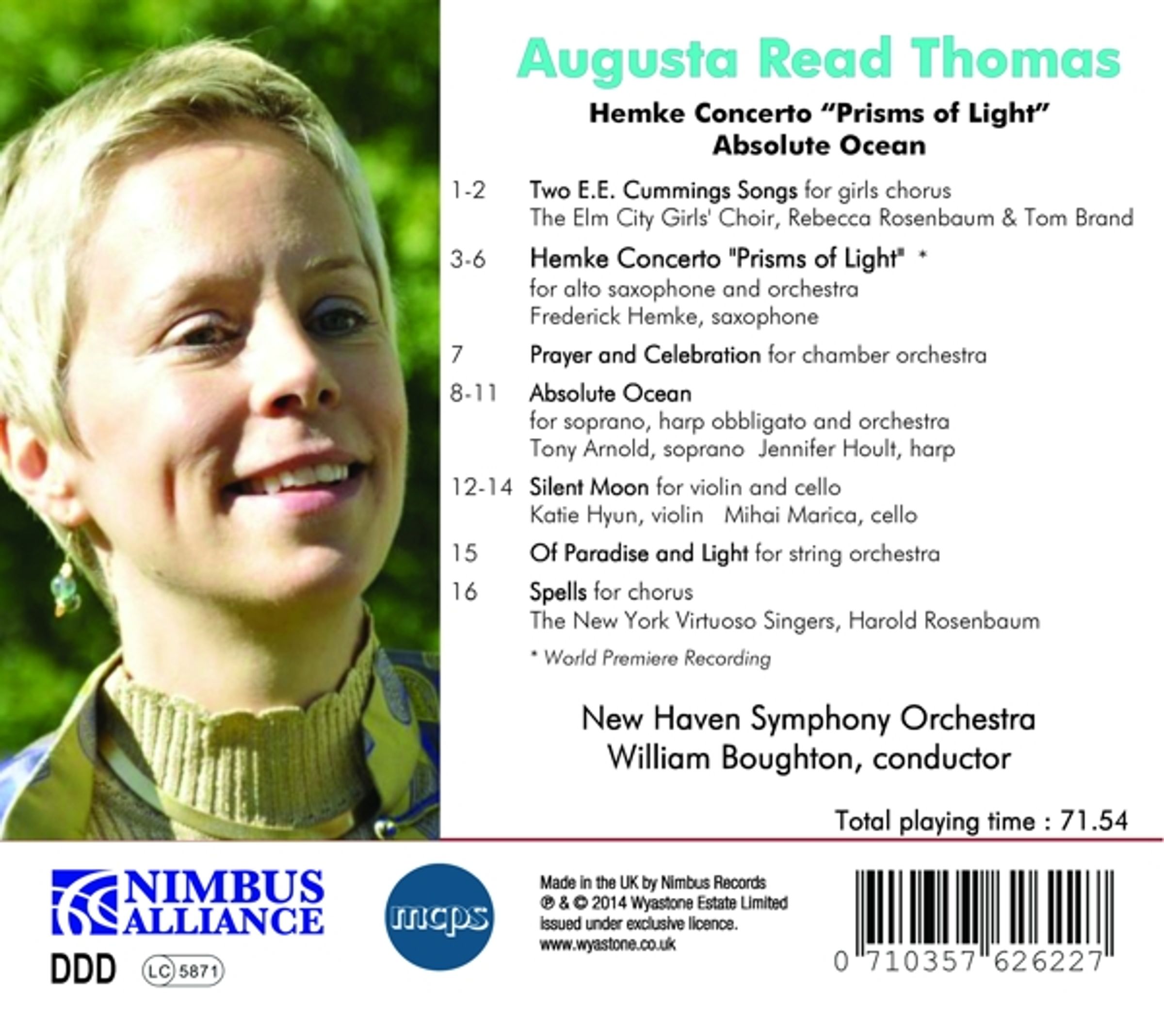Die ersten beiden Bände dieser Augusta Read Thomas-Aufnahmeserie konzentrierten sich auf Orchester- bzw. Kammer-/Klaviermusik und sammelten Aufführungen verschiedener Ensembles. Dieser dritte Band ist etwas anders: eine Aufnahme eines Live-Konzerts zum 50. Geburtstag des New Haven (Connecticut) Symphony Orchestra unter der Leitung von William Boughton.