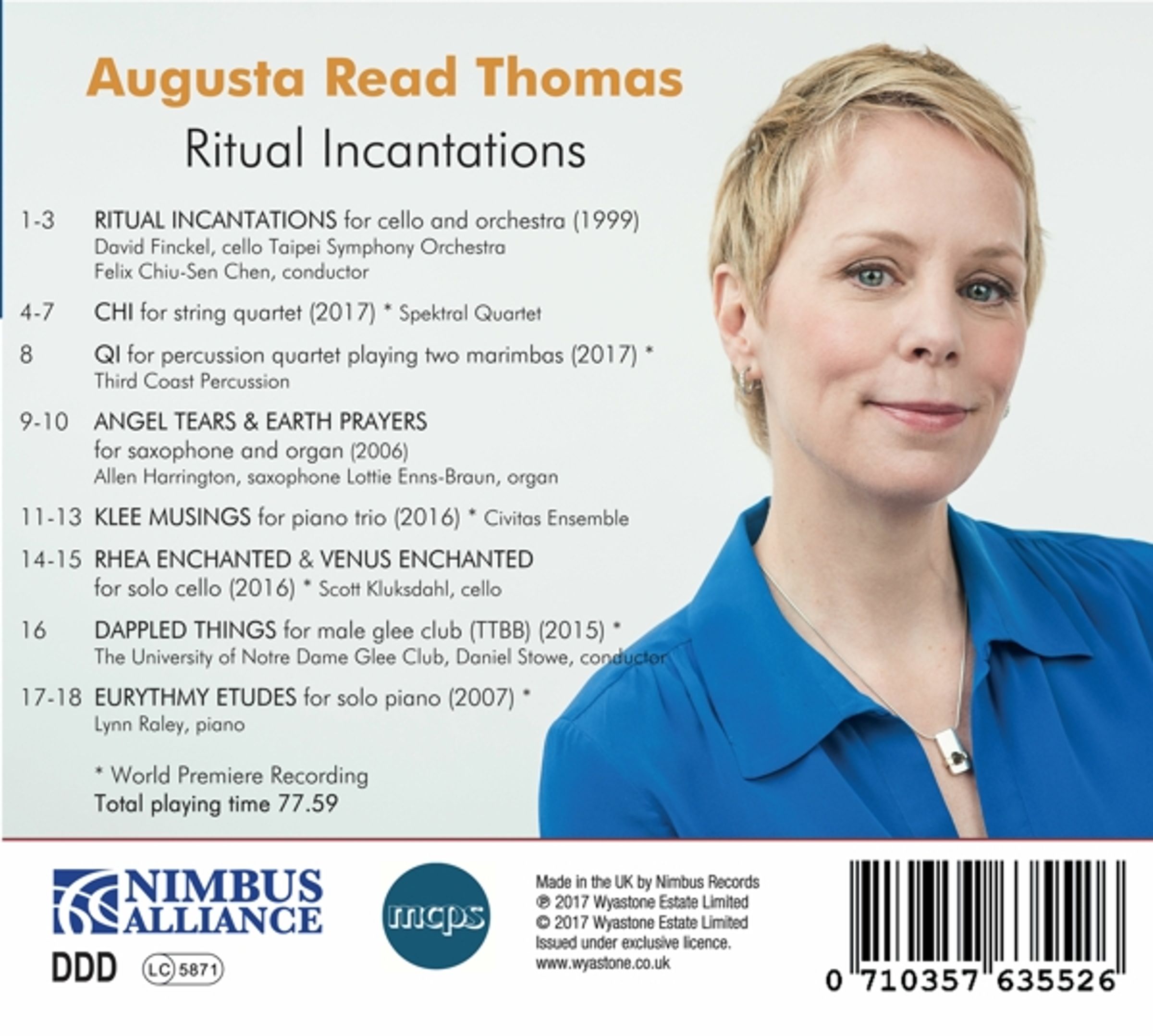 Die vorliegende Sammlung der Werke von Augusta Read Thomas umfasst 18 Jahre, von 1999 bis 2017. Sie stellt die beiden Seiten von Thomas gegenüber, die wir bereits in früheren Bänden kennengelernt haben: den groß angelegten Denker im Cellokonzert Ritual Incantations, dem Klaviertrio Klee Musings und dem jüngsten Streichquartett Chi sowie den Miniaturisten in den sechs anderen Werken, die auf dieser CD als Satelliten der oben genannten drei größeren Werke fungieren.