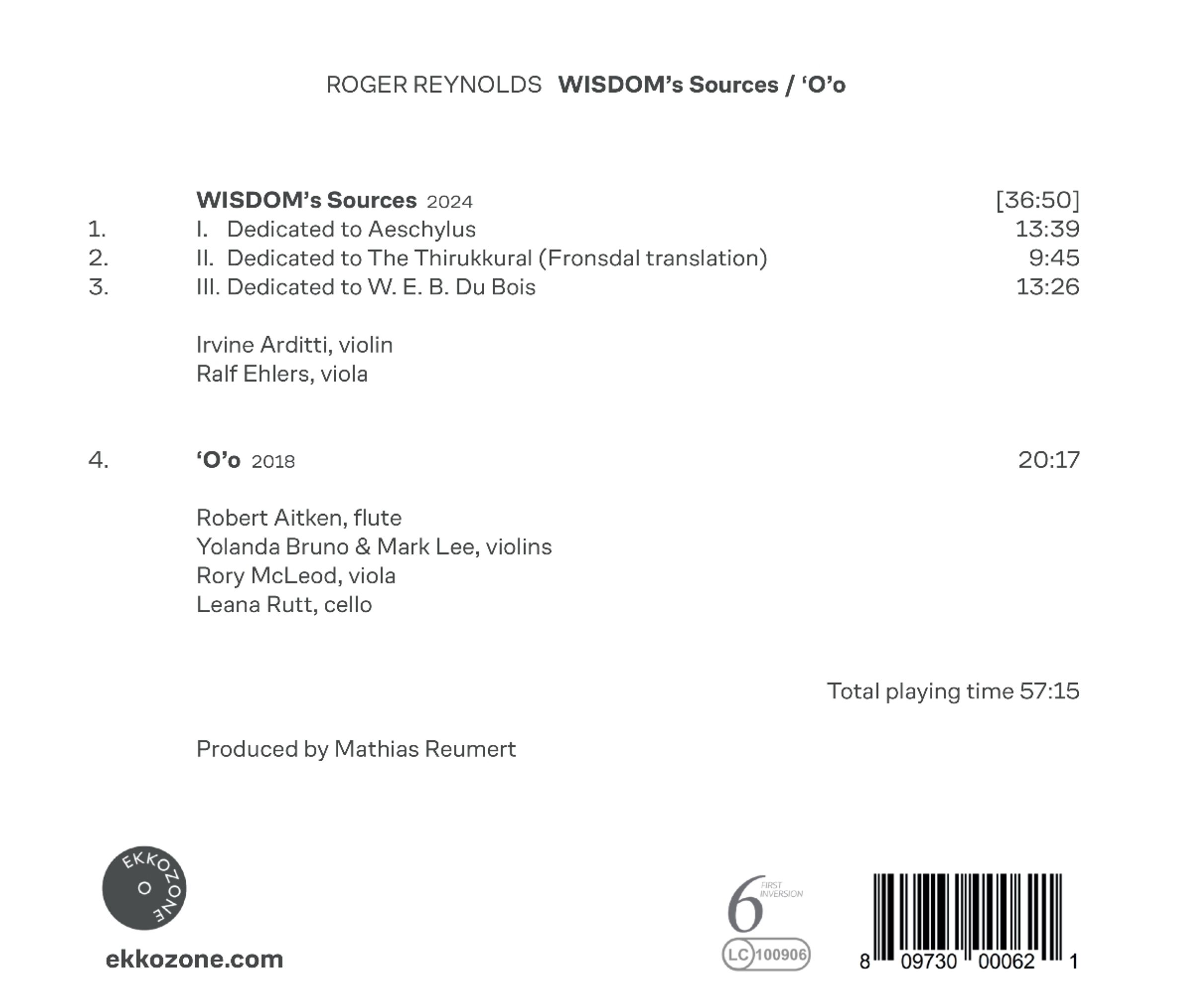 Roger Reynolds: Wisdom's Sources für Violine & Viola auf CD