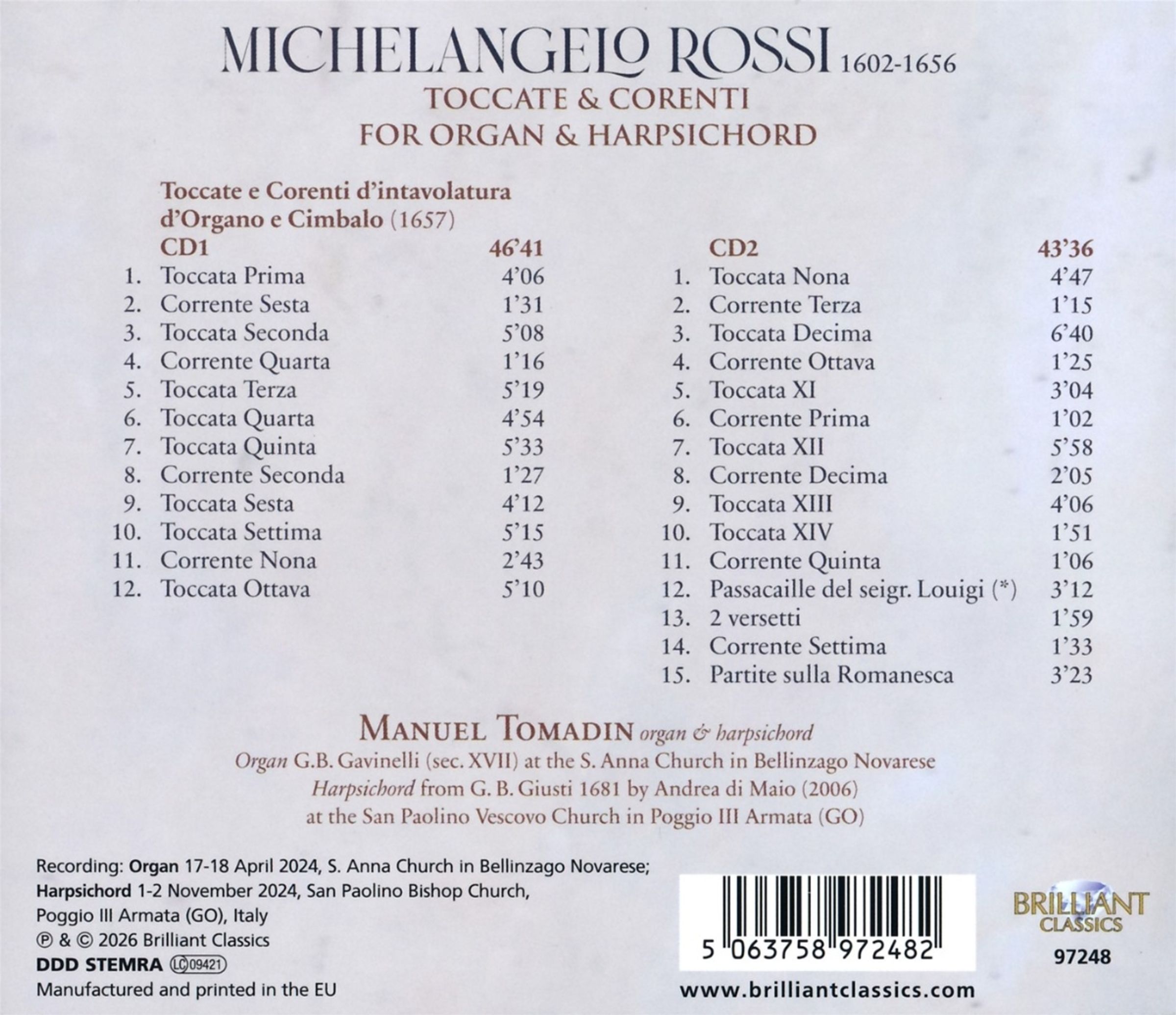Michelangelo Rossi: Toccate e Correnti für Orgel & Cembalo auf CD