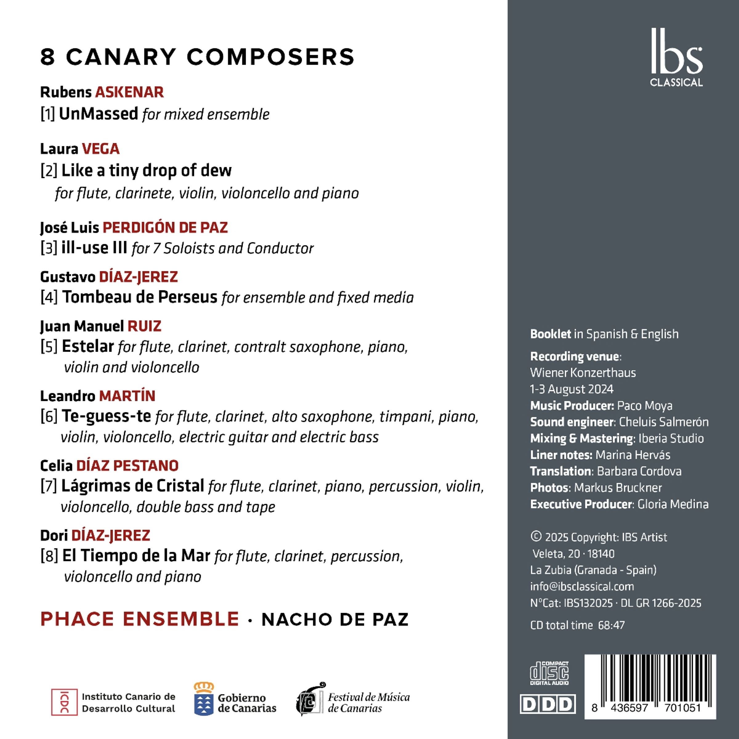 Das neue Album "8 Canary Composers", aufgenommen vom renommierten Ensemble Phace unter der Leitung von Nacho de Paz, bietet eine außergewöhnliche Reise durch die zeitgenössische Musik der Kanarischen Inseln. Acht Komponistinnen und Komponisten - Cecilia Diaz Pestano, Dori Diaz Jerez, Gustavo Diaz Jerez, Jose Luis Perdigon de Paz, Laura Vega, Juan Manuel Ruiz, Leandro Martin und Rubens Askenar - präsentieren ein Kaleidoskop musikalischer Sprachen, das die Vitalität und Vielfalt des heutigen Schaffens offenbart. Fernab von regionalen oder stilistischen Etiketten lädt uns das Projekt dazu ein, zu hören, wie Territorium, Gedächtnis und persönliche Erfahrungen in zeitgenössischen Klängen weiterleben. Die Werke, inspiriert von Mutterliebe, dem Meer, Wissenschaft, Folklore und Spiritualität, zeigen vielfältige Möglichkeiten, die Musik der Inseln zu erleben und neu zu interpretieren.