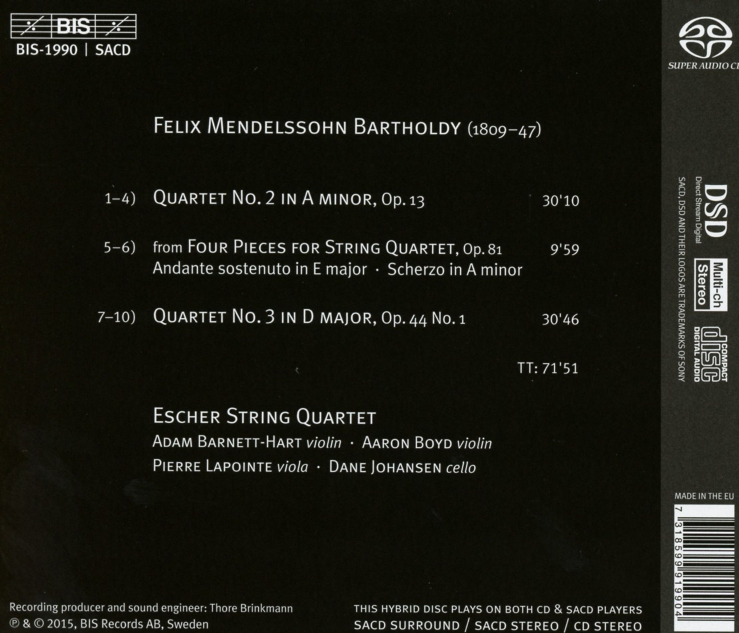 Felix Mendelssohn Bartholdy: Streichquartette Nr.2 & 3 auf Super Audio CD